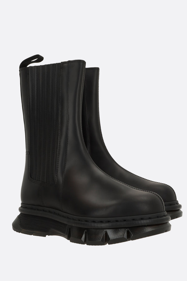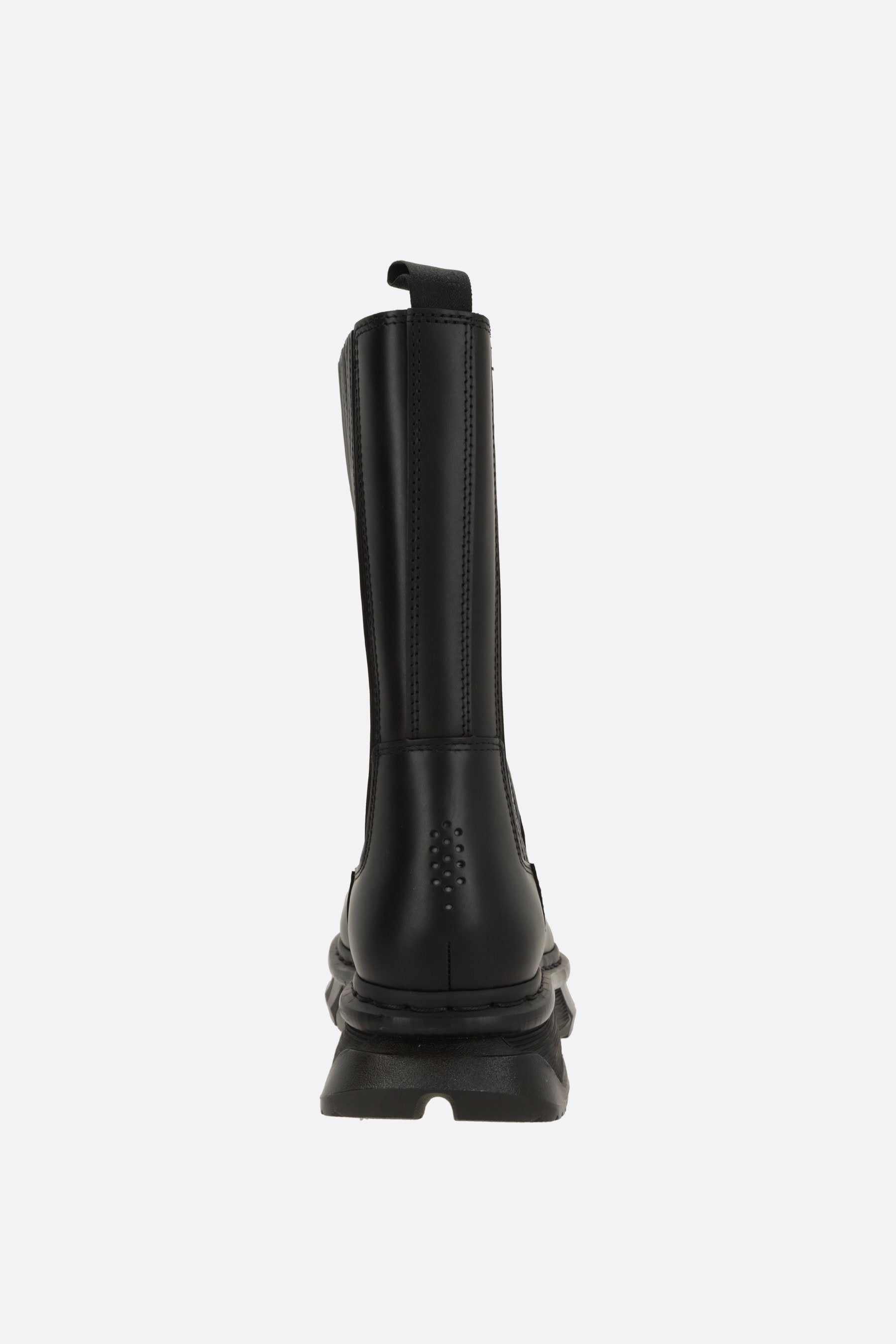 Chelsea boot by Dr. Martens made from black Orleans leather. Featuring elastic side panels, round toe, leather/textile lining, and a textured rubber sole. The design is completed with the iconic AirWair heel loop.