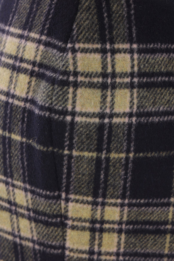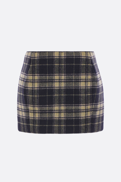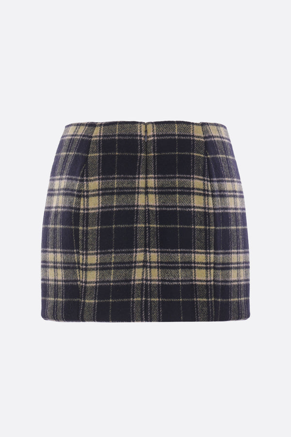 Duran Lantink mini skirt crafted in blue wool-blend flannel with a tartan pattern. Featuring back invisible zip closure, straight hem, and shaped, padded design. Lined interior.