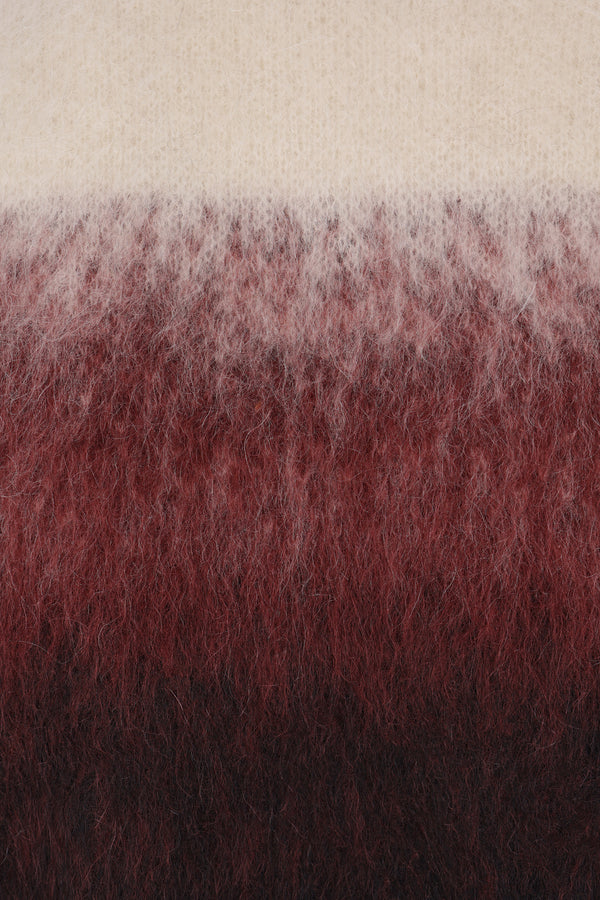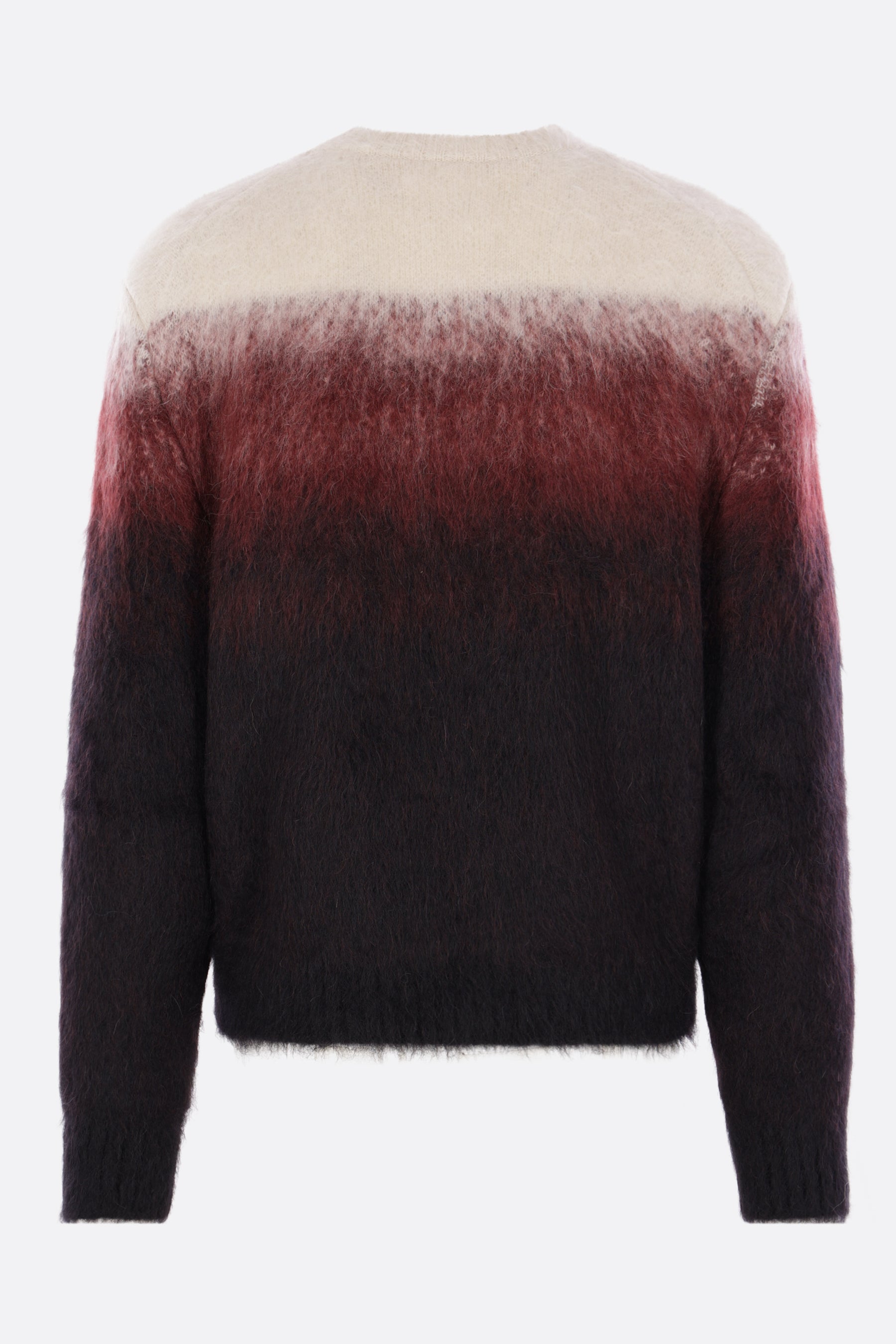 Jil Sander sweater made from brushed wool and jacquard mohair with a gradient effect. Features a crew neckline, long sleeves, and ribbed edges.