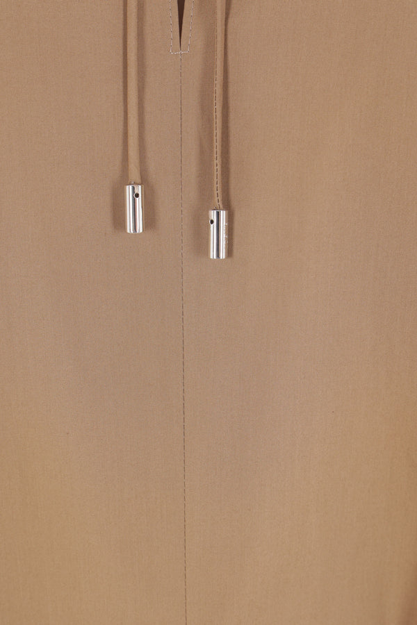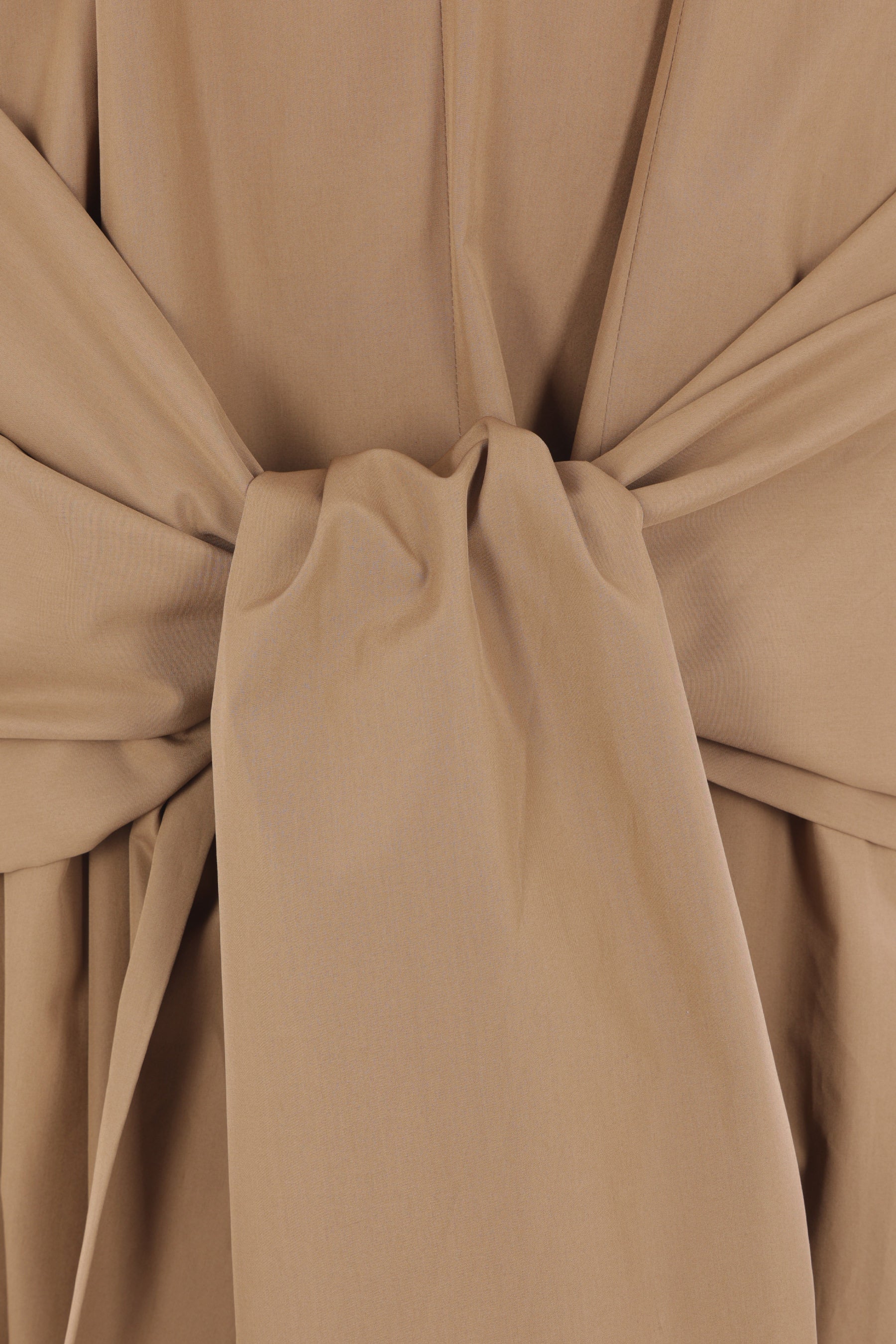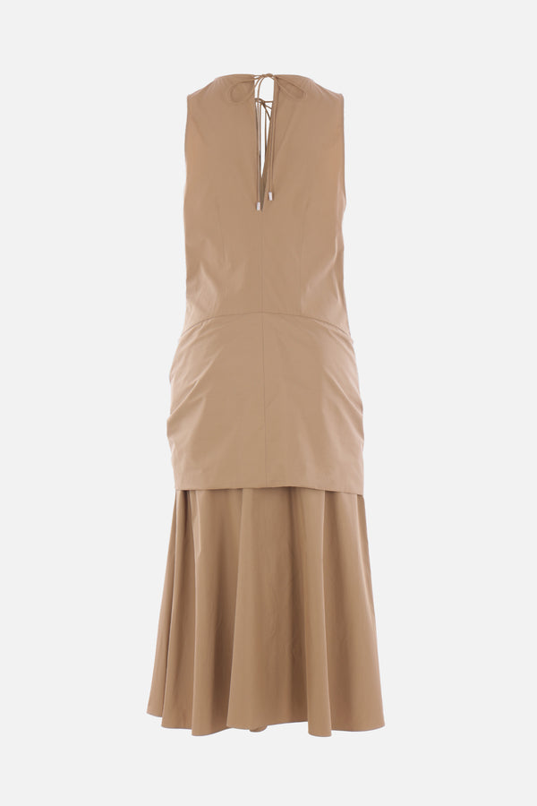 Loewe sleeveless dress crafted from dark beige cotton poplin. Featuring cut-out details with lacing on the front and back, tie panels on the front, invisible side pockets, side slit, and unlined interior. The design is completed by tone-on-tone Anagram embroidery on the front.