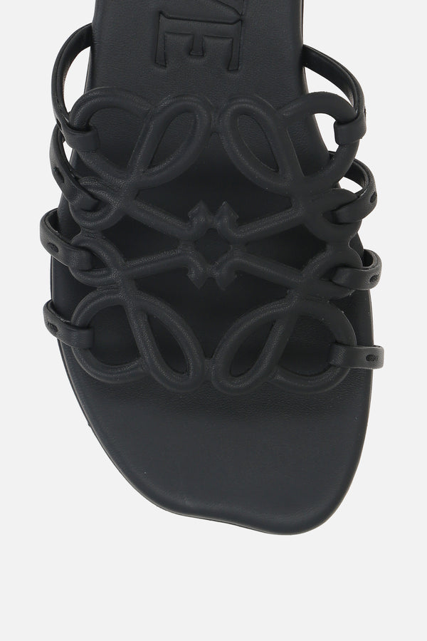 Petal Anagram slide sandal in smooth leather