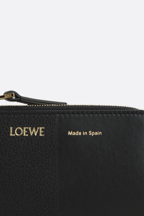 Loewe card holder crafted from grained and smooth leather. Featuring gold-tone hardware, half-zip closure, and four card slots.