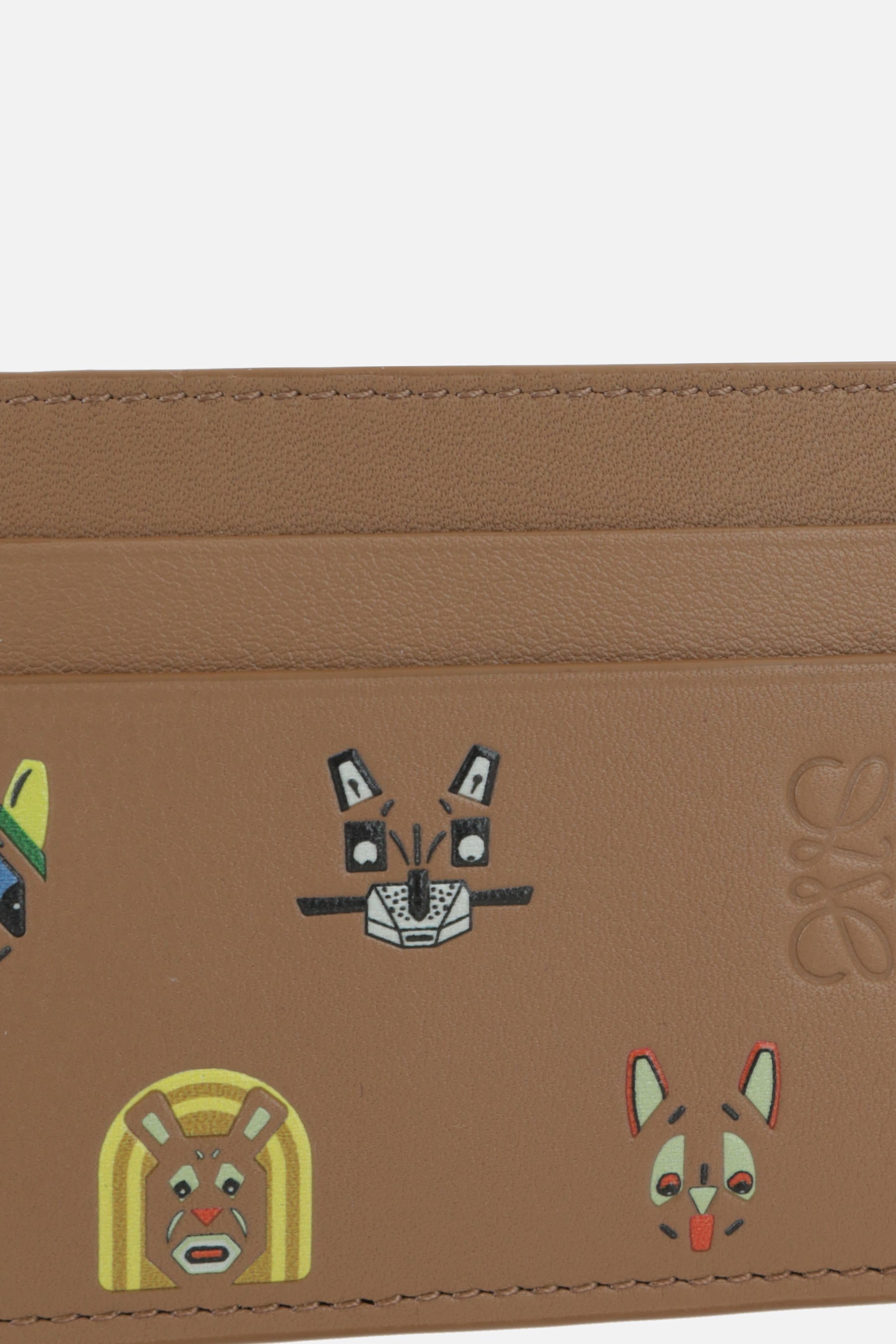 Loewe card holder made of smooth leather with 3-D "Cats" print. Features central opening, four card slots, and interior lined in tone-on-tone leather.