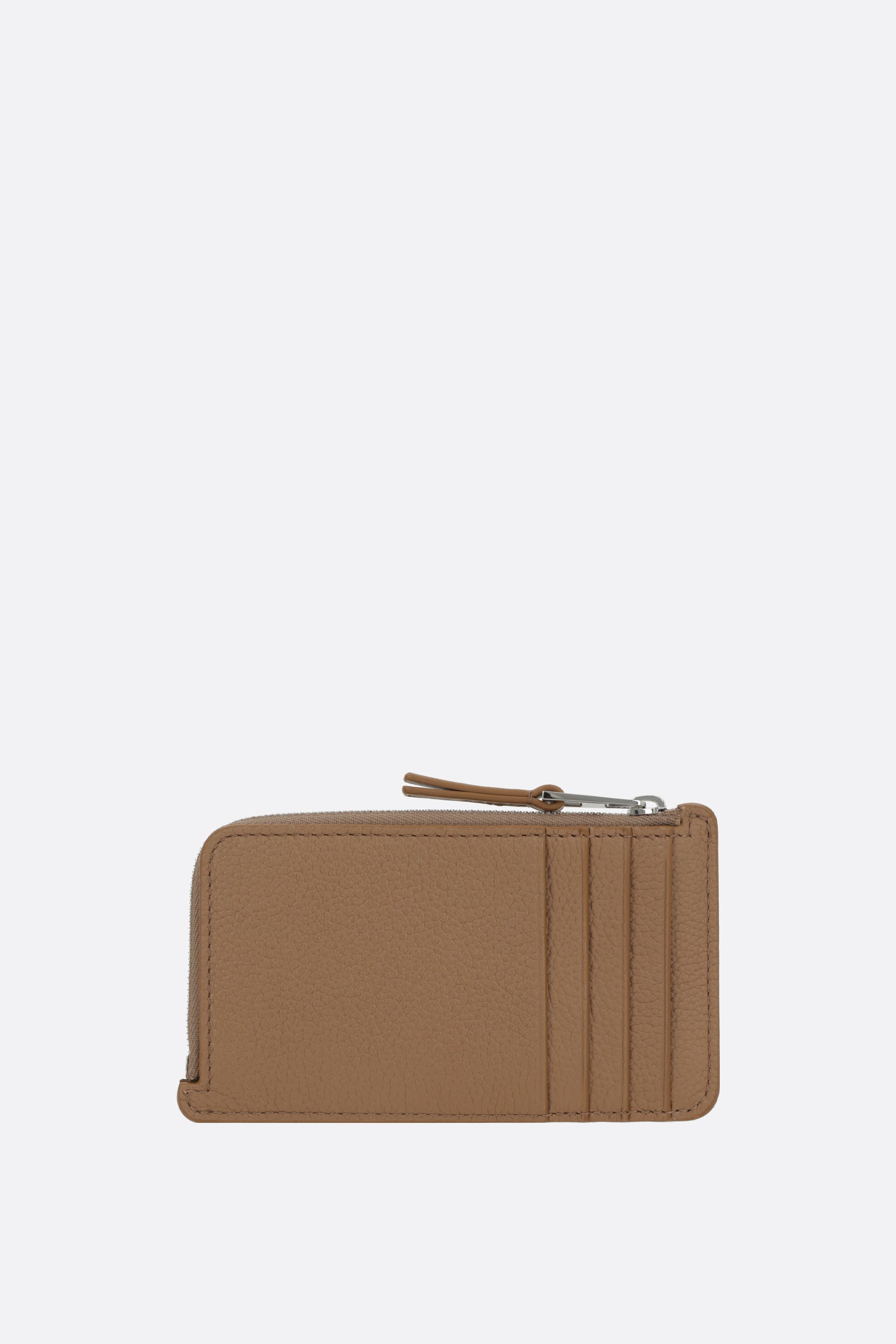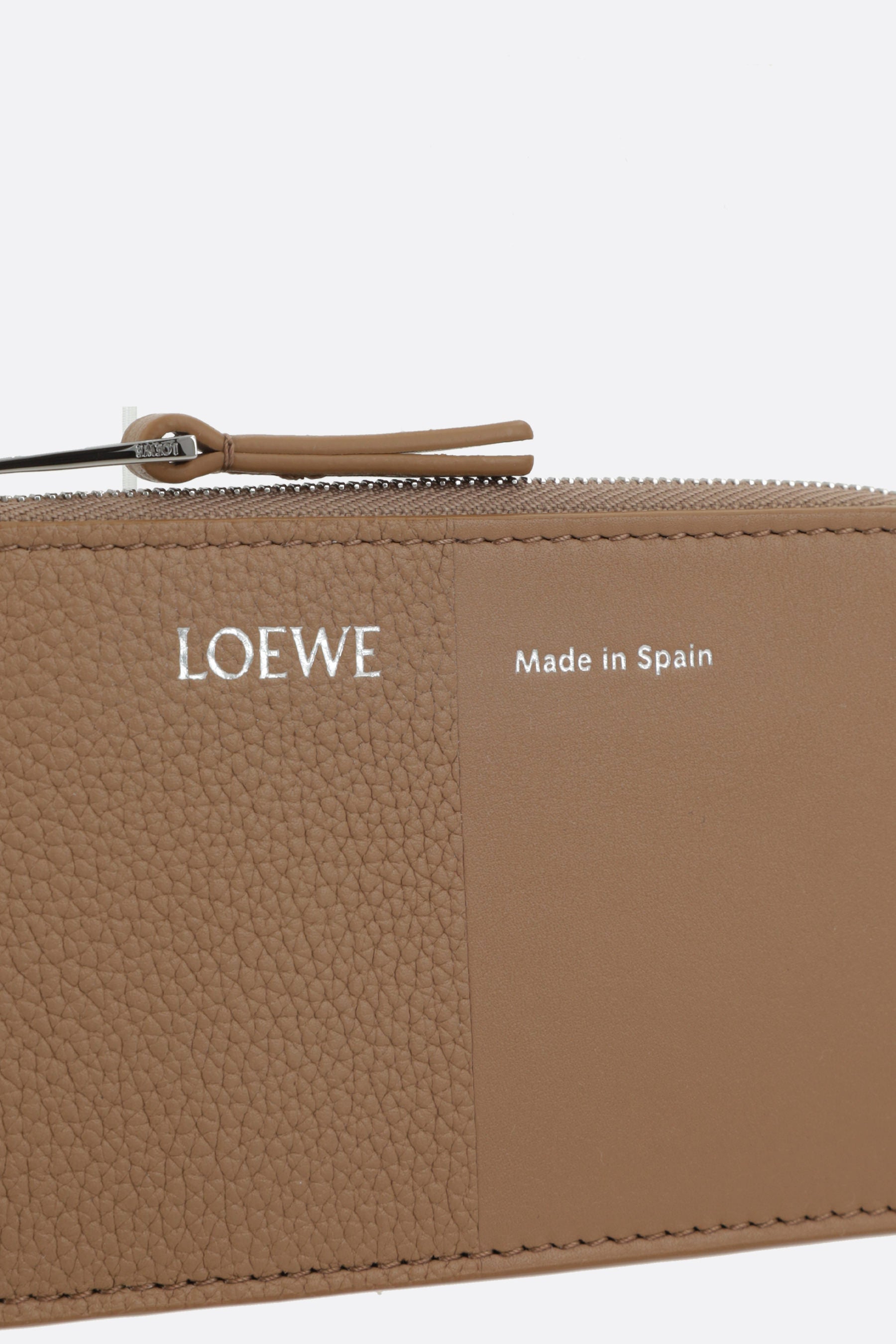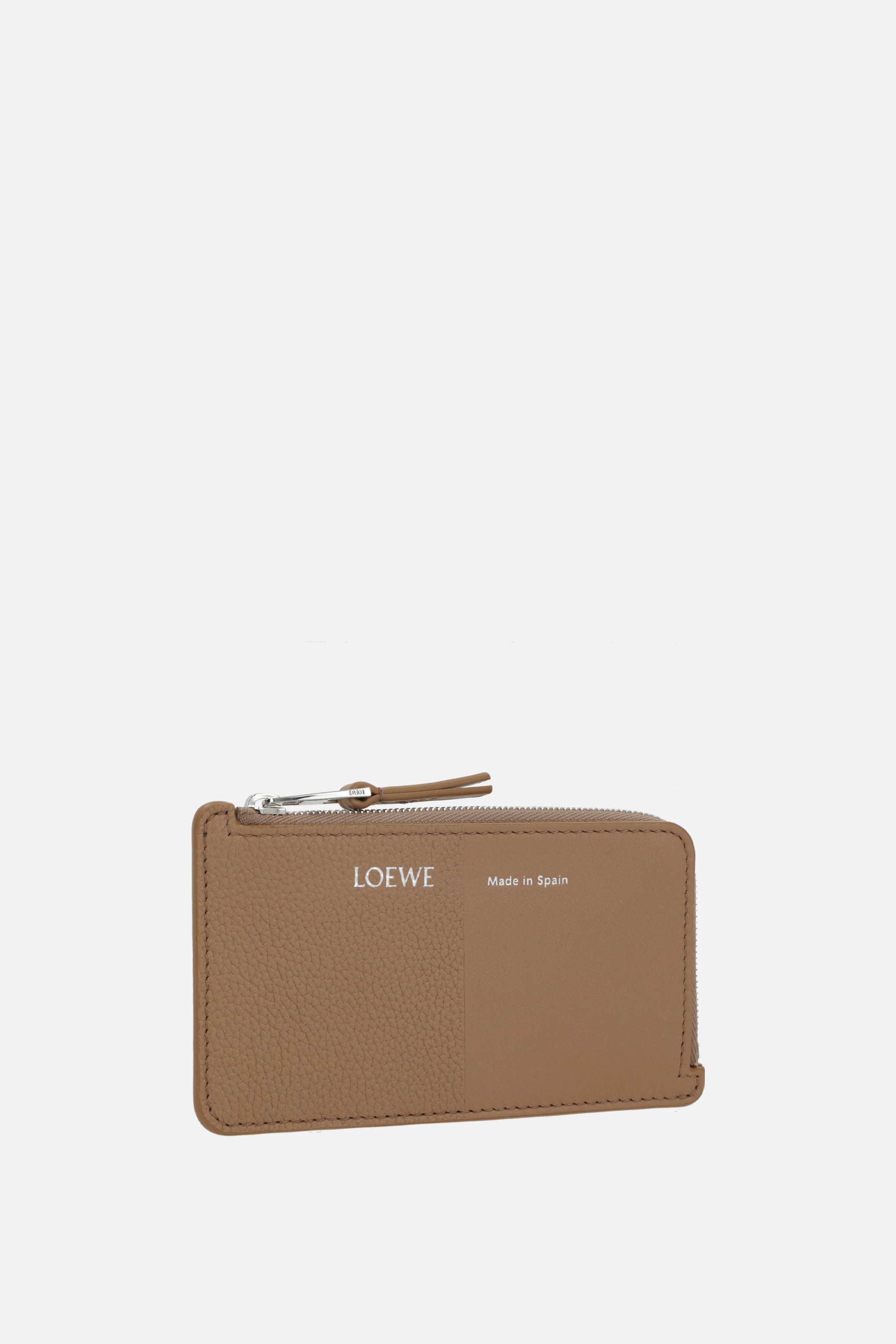 Loewe card holder crafted from grained and smooth leather. Featuring gold-tone hardware, half-zip closure, and four card slots.