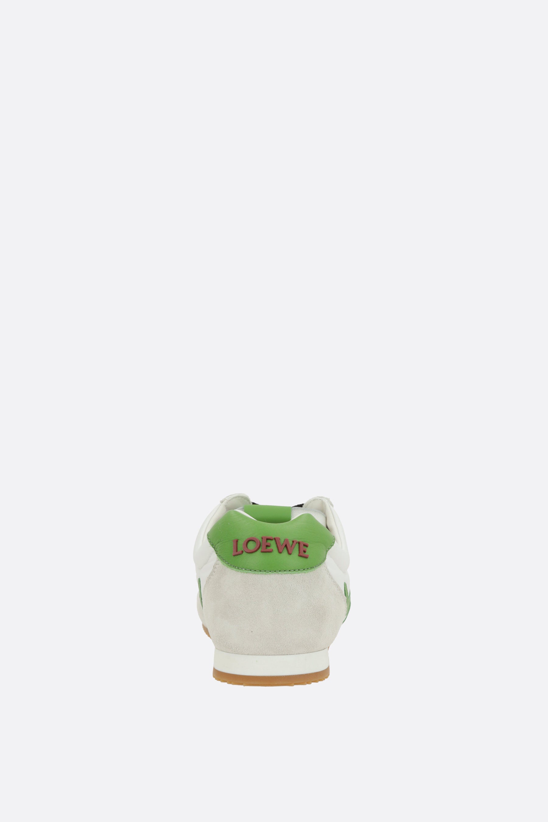 Loewe sneaker designed in collaboration with Louis Wain and crafted from nylon and smooth leather. Featuring lace-up closure, an enamelled metal “Cat” charm, asymmetric toe shape, padded tongue with “Anagram” tag, leather lining, and a textured rubber sole.