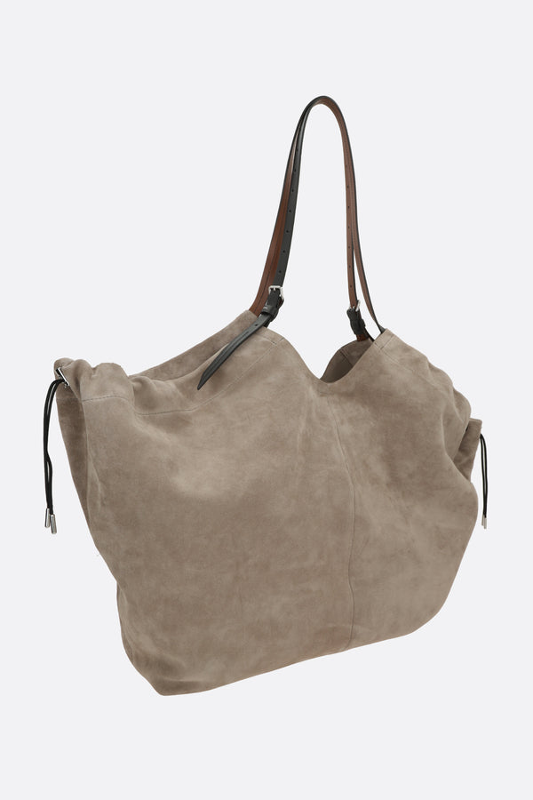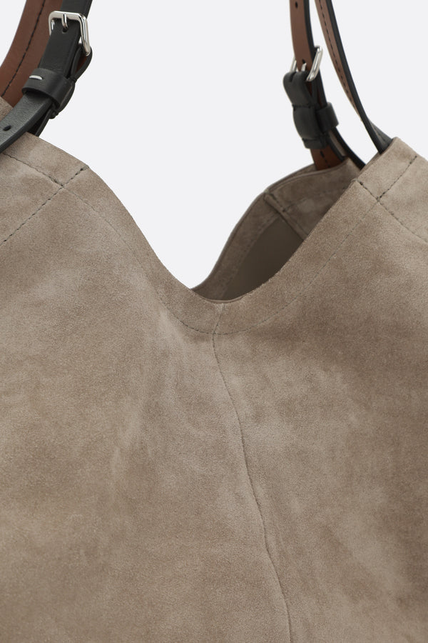 Maison Margiela oversized shopper crafted from beige suede leather.