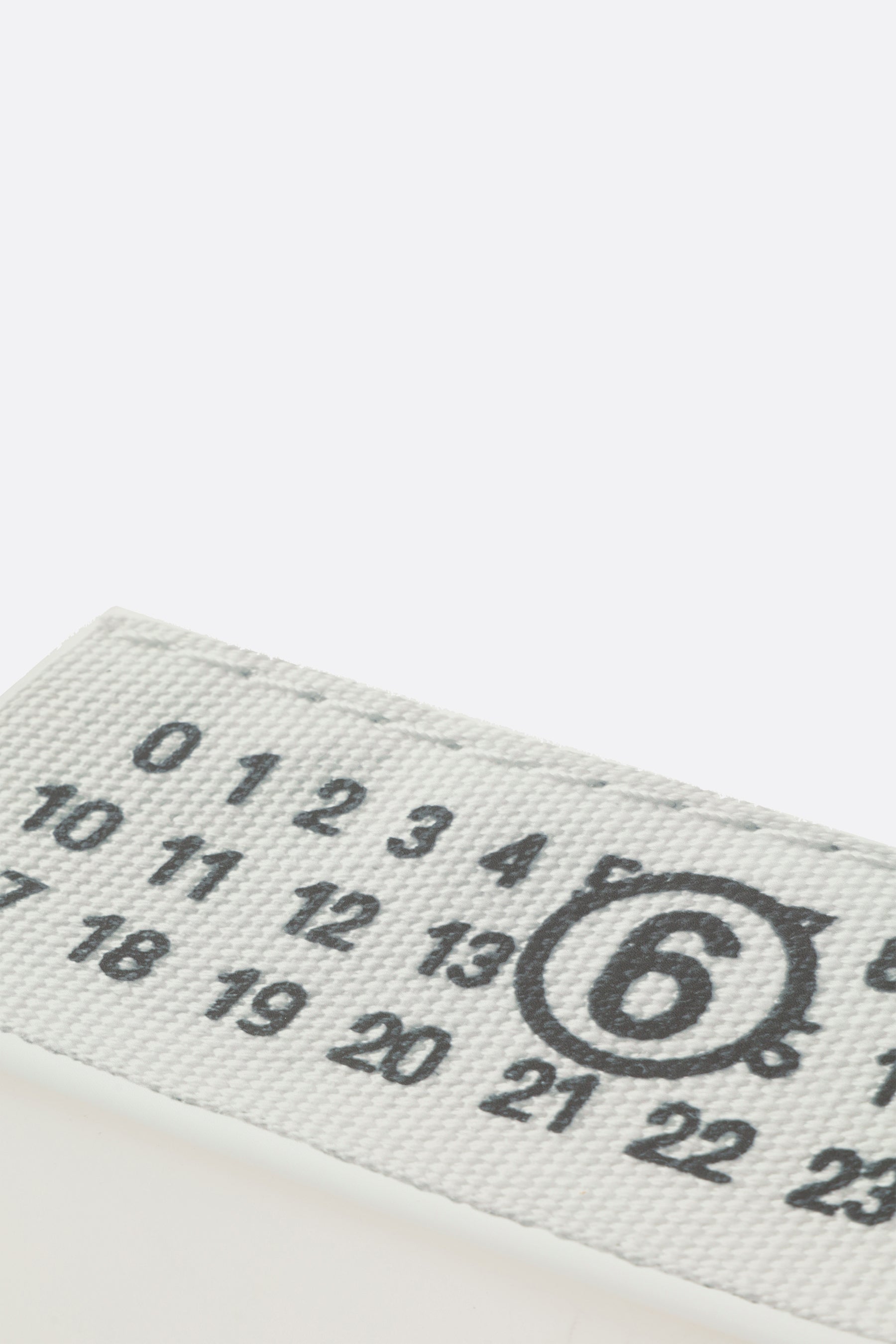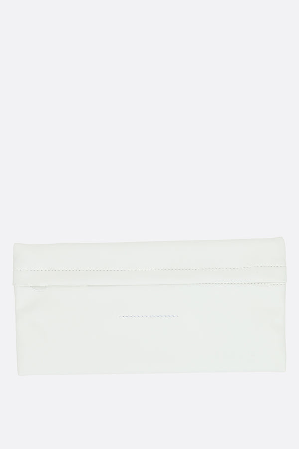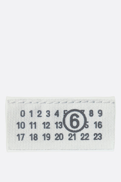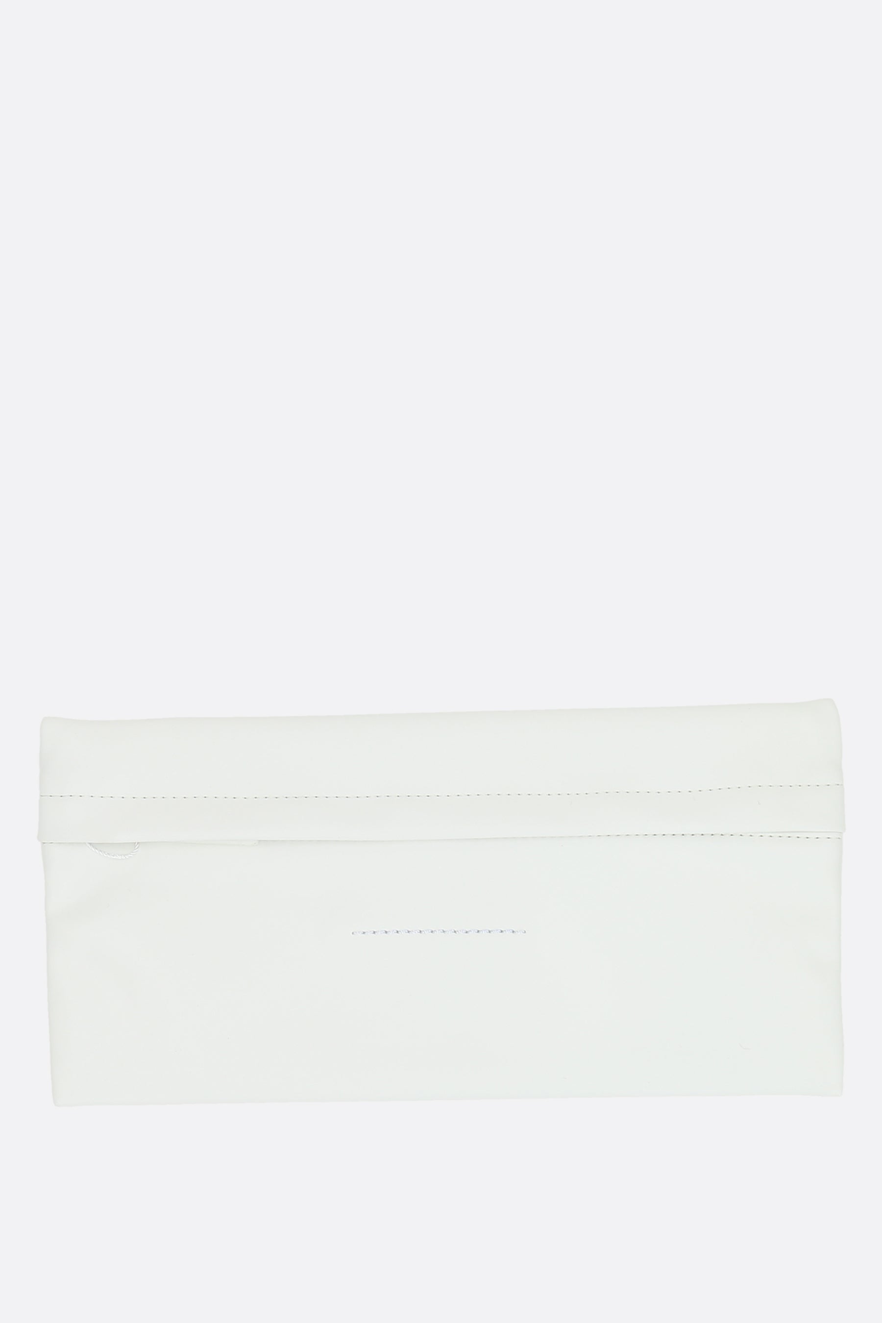 MM6 clutch crafted in eco-leather with Numeric label print. Featuring silver-tone hardware, a rear zip closure, and a white canvas-lined interior. The design is completed by the Maison's iconic white topstitching detail.