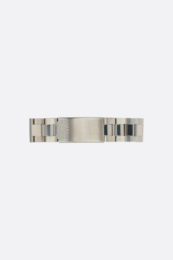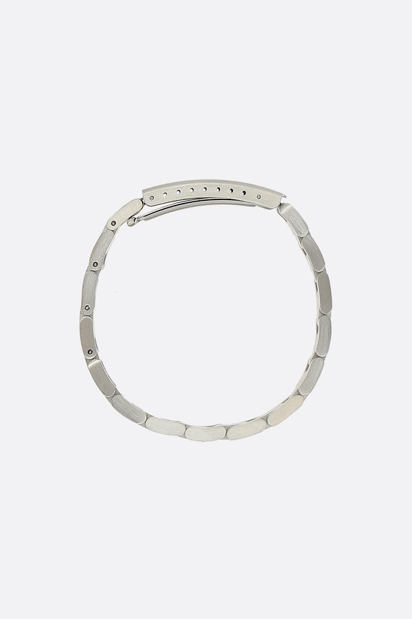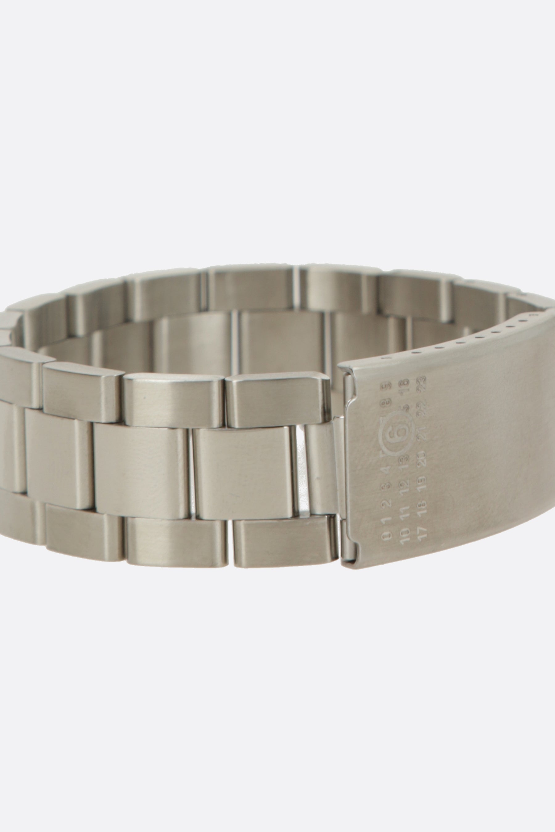 MM6 bracelet crafted in silver-finish brass, featuring a brushed plate engraved with the Maison's signature numeric logo. Snap closure.