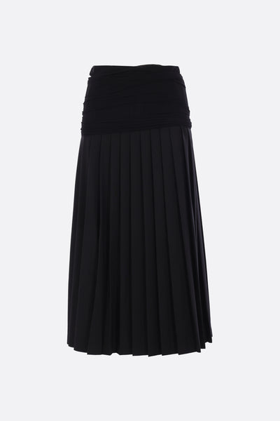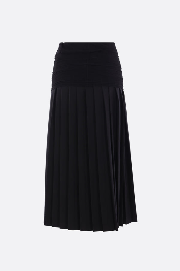 pleated skirt in wool blend with stretch mesh panel