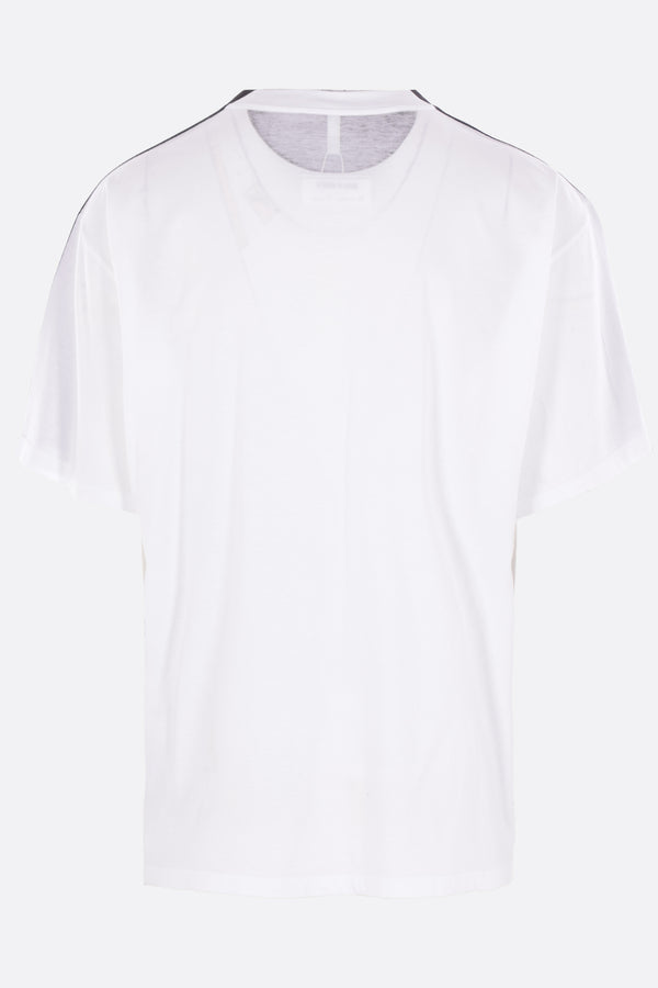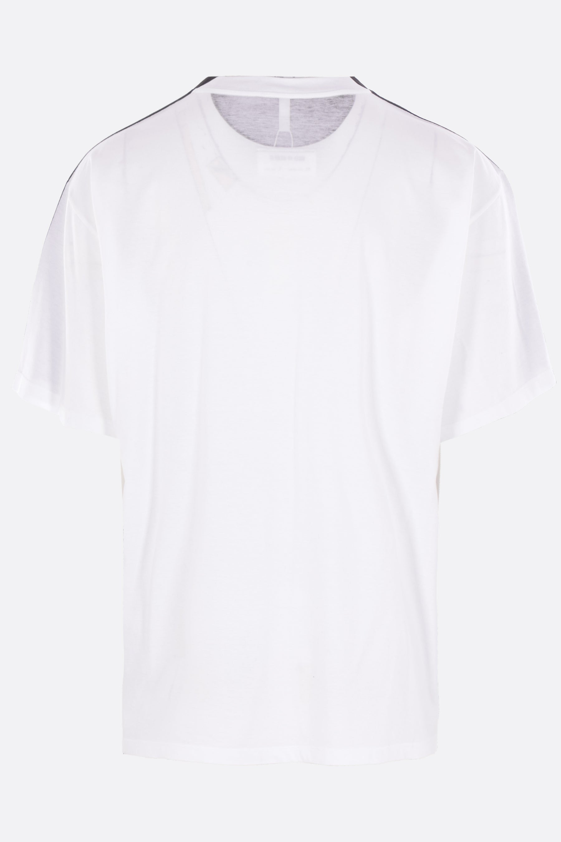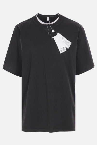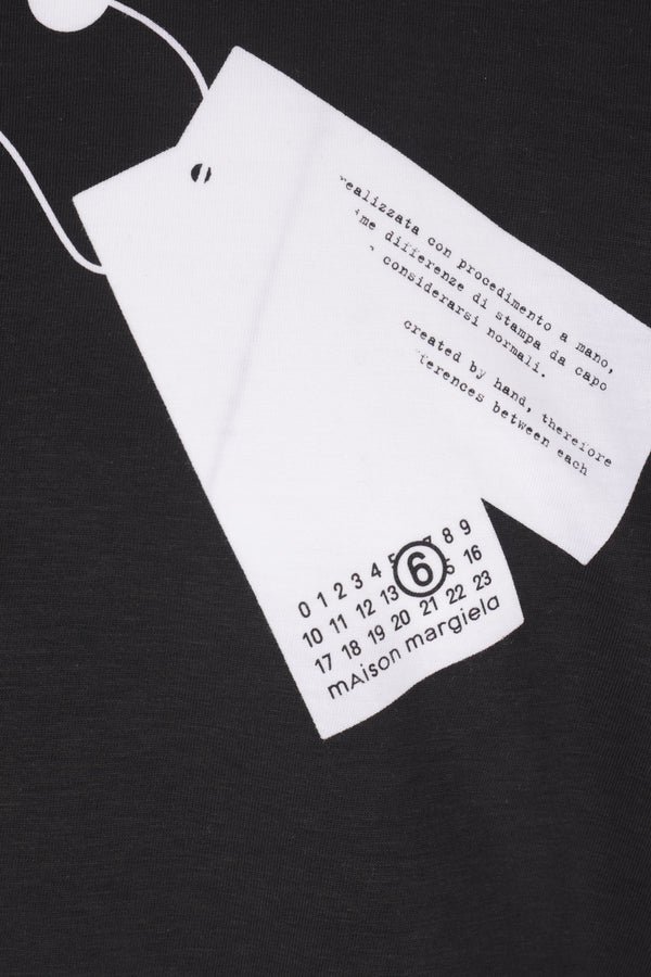 MM6 t-shirt made of black and white cotton jersey with a trompe-l'œil effect screen-printed graphic. Featuring a crew neckline, short sleeves, and a straight hem. The design is completed by the Maison's signature white stitching on the back.
