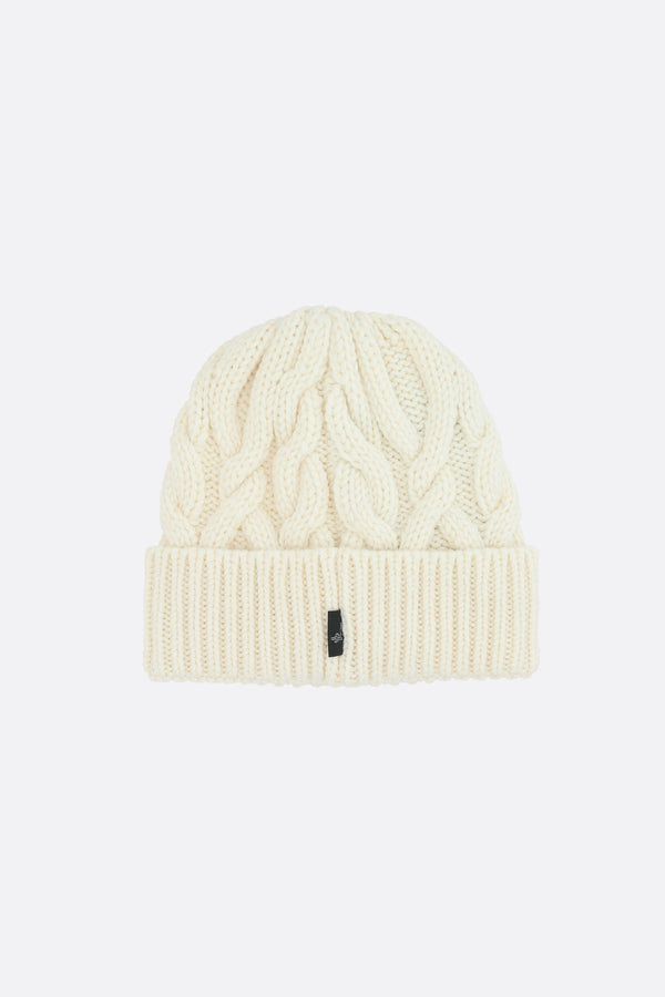 cable-knit wool beanie