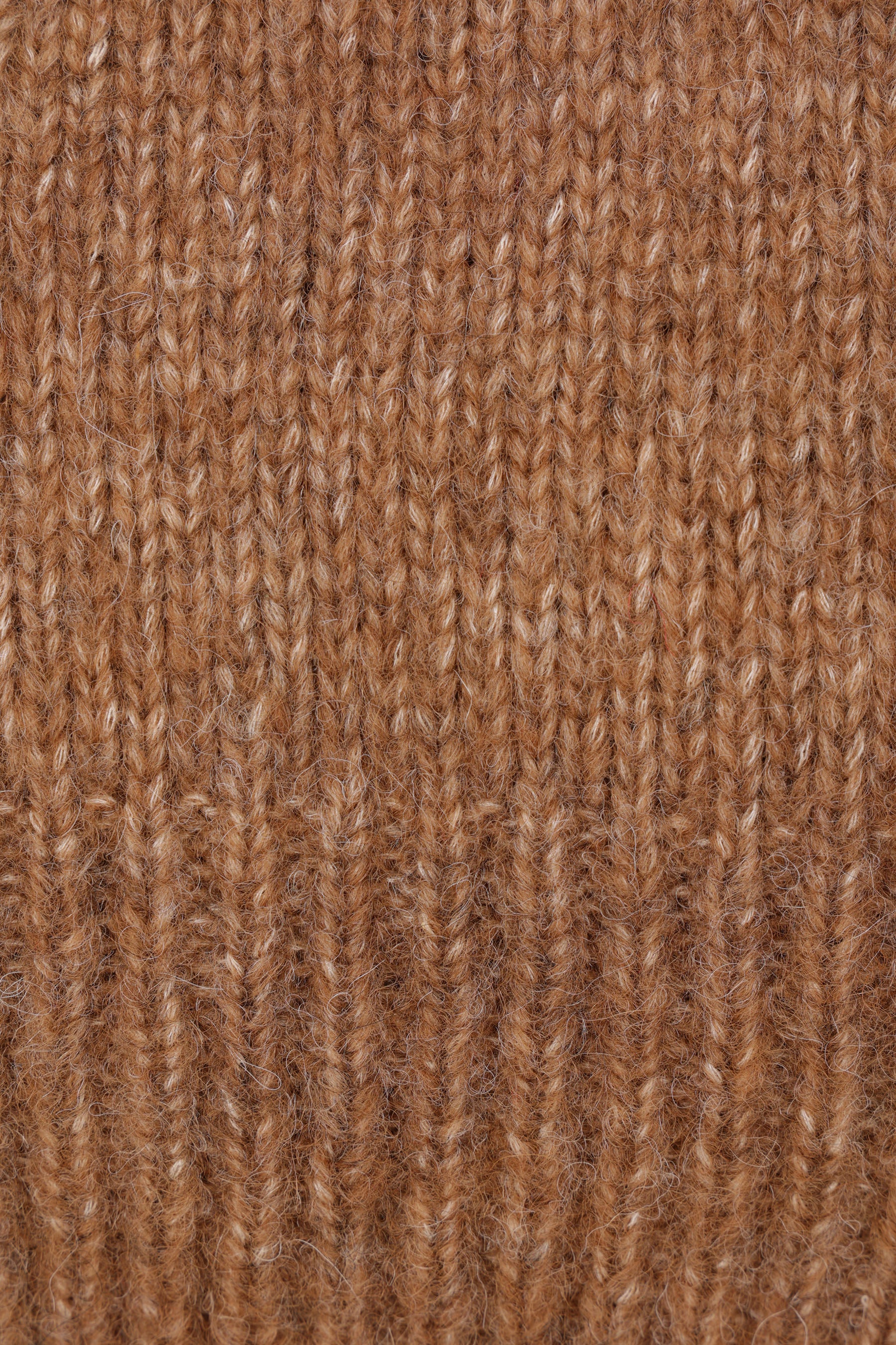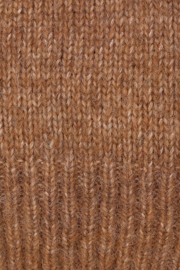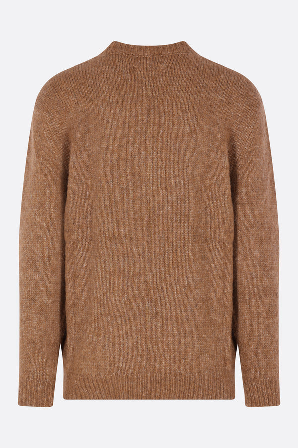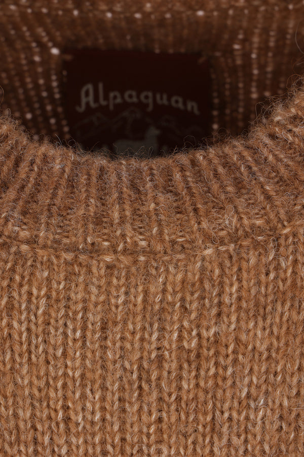 Monitaly sweater crafted from brown melange alpaca and Pima cotton blend. Featuring a crew neckline, long sleeves, and ribbed edges.
