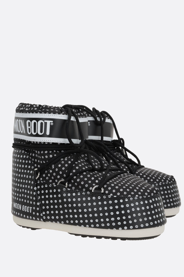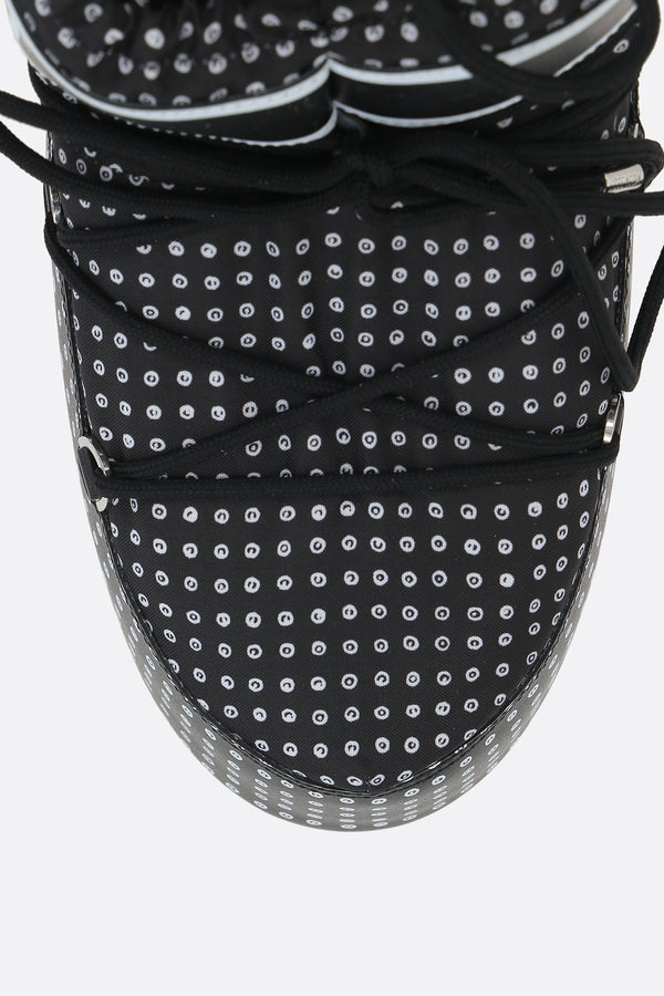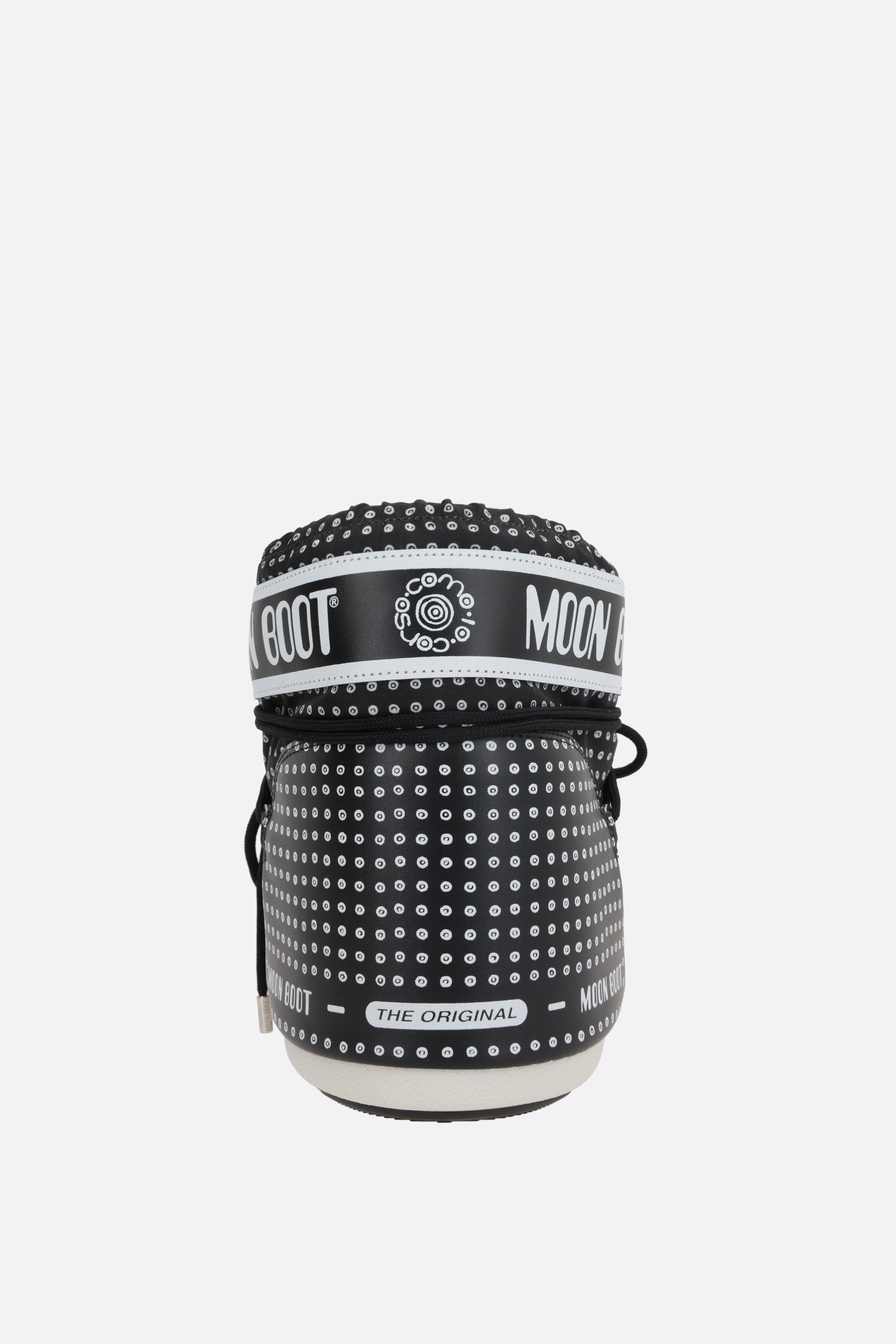 Snow boot by Moon Boot designed in collaboration with 10 Corso Como, made of black nylon with contrasting logo print. Characterized by lace-up closure, round toe, fabric lining and rubber sole. The design is completed by the contrasting faux leather band with printed logos.