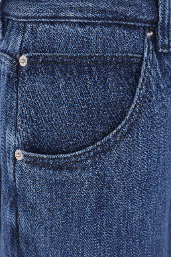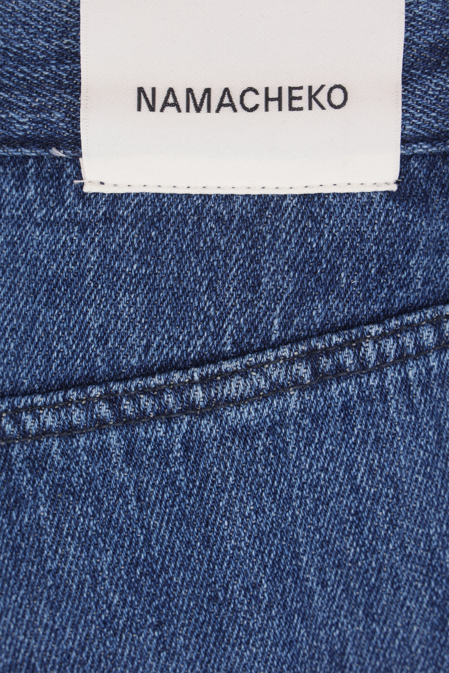 Jeans by Namacheko made of blue cotton and linen denim. Featuring front button and zip closure, belt loops, and classic five-pocket design.