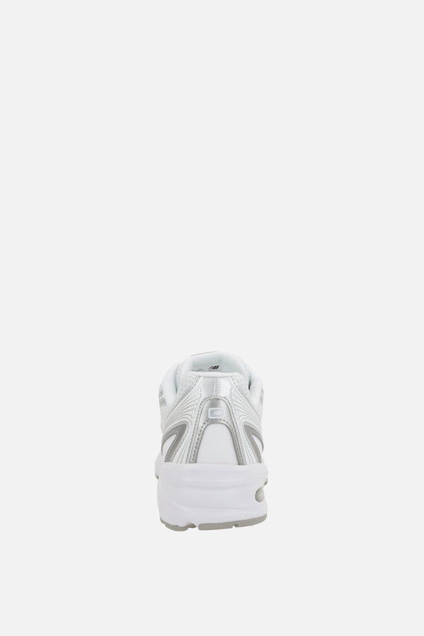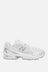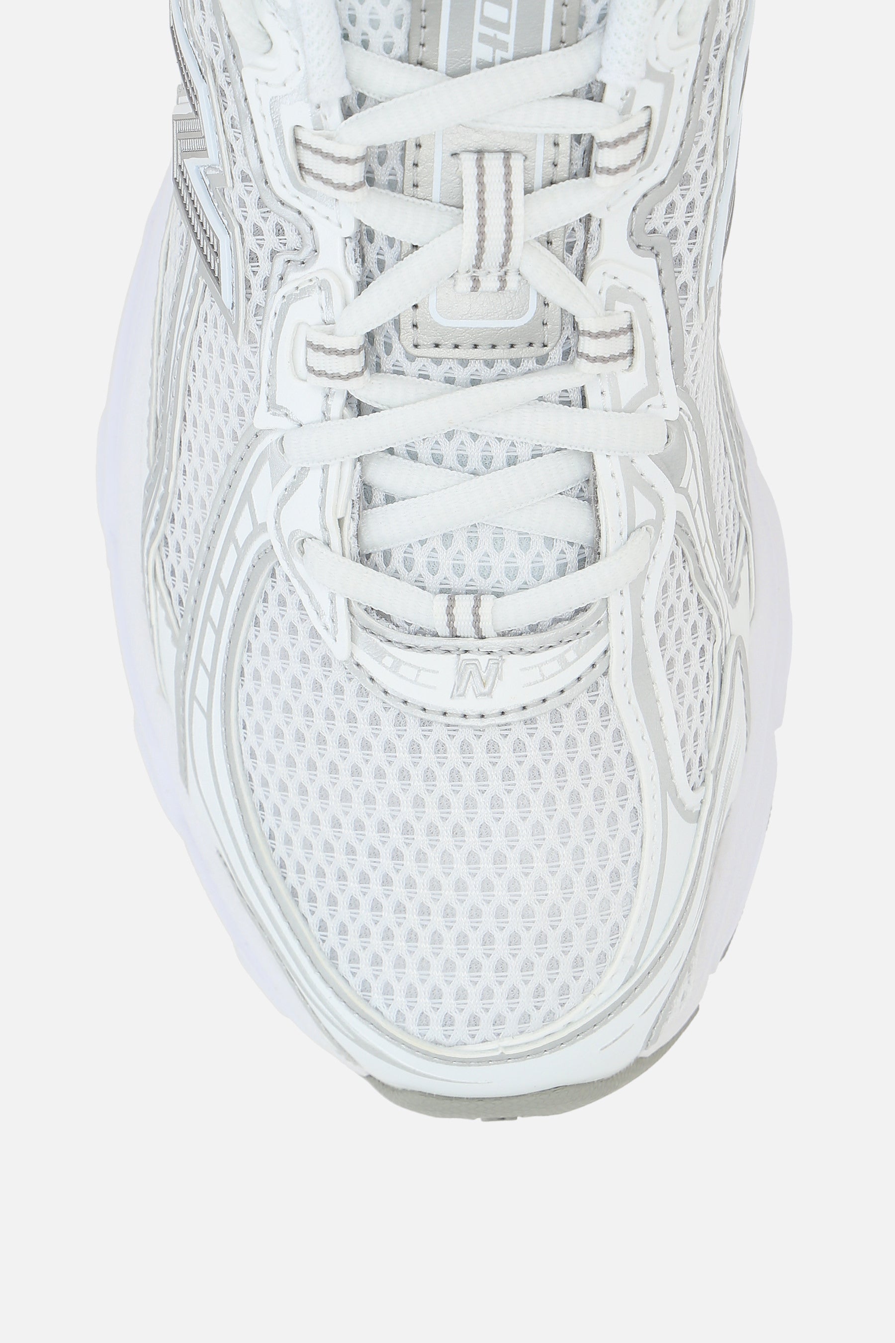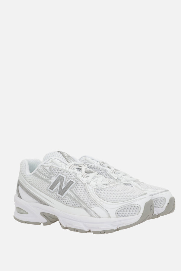 New Balance low-top sneakers made from white mesh and synthetic leather. Featuring lace-up closure, round toe, fabric lining, and rubber sole. The design is completed with an embroidered N patch on the sides and NB detailing on the heel.
