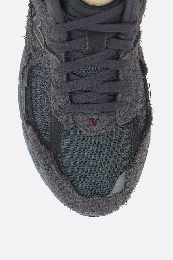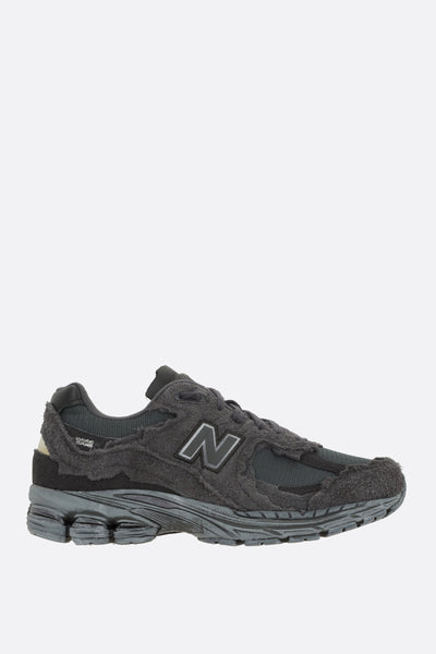 New Balance low-top sneakers crafted from dark gray mesh and suede. Featuring lace-up closure, rounded toe, fabric lining, ABZORB impact-absorbing midsole, ABZORB SBS cushioned heel, and N-ergy rubber outsole. Completed with embroidered N patch on the sides and perforated detail on the heel.