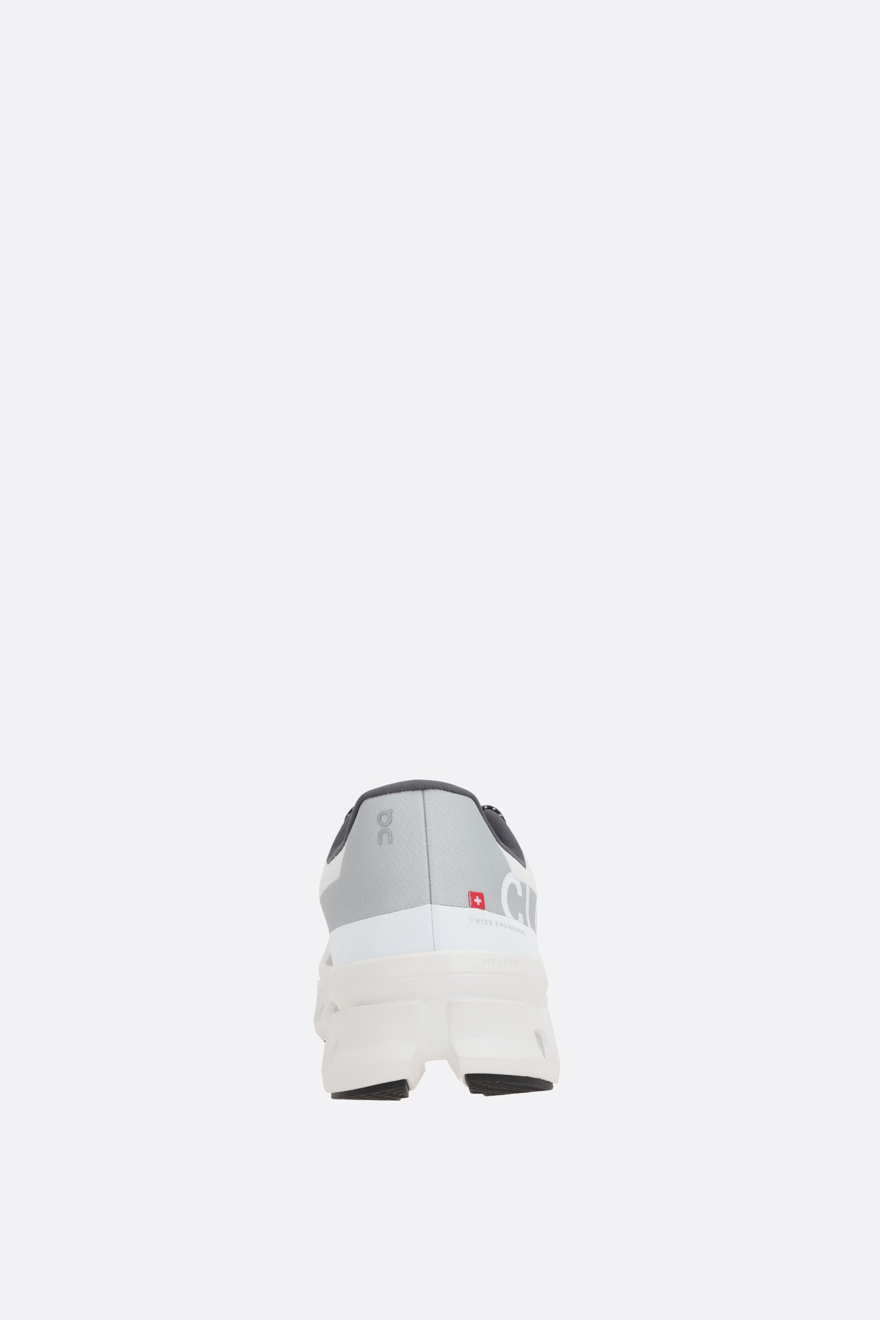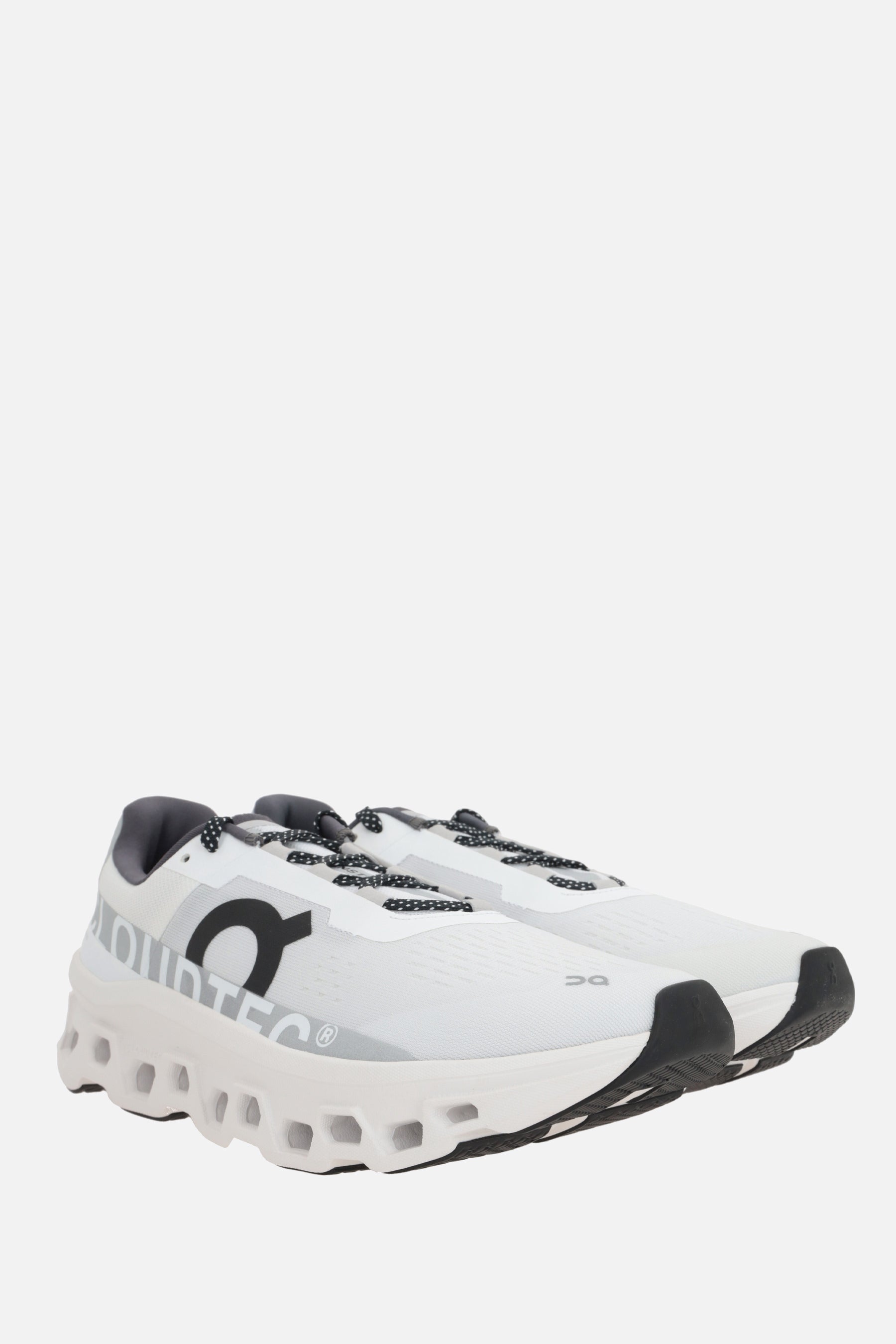 On low-top sneakers crafted in white technical knit with contrasting heat-bonded details. Featuring lace-up closure, a round-toe silhouette, fabric lining and rubber sole. The design is completed by the iconic ON Cloudmonster logo printed on tongue / on side.