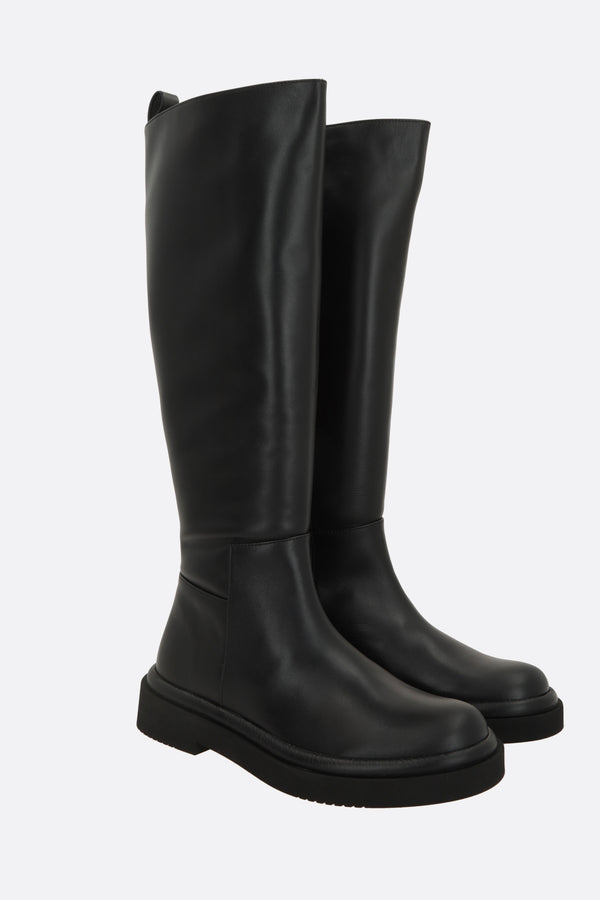 Boot by Paloma Barceló made of black nappa leather. Features a round toe, side zip closure, leather lining, and a rubber sole.