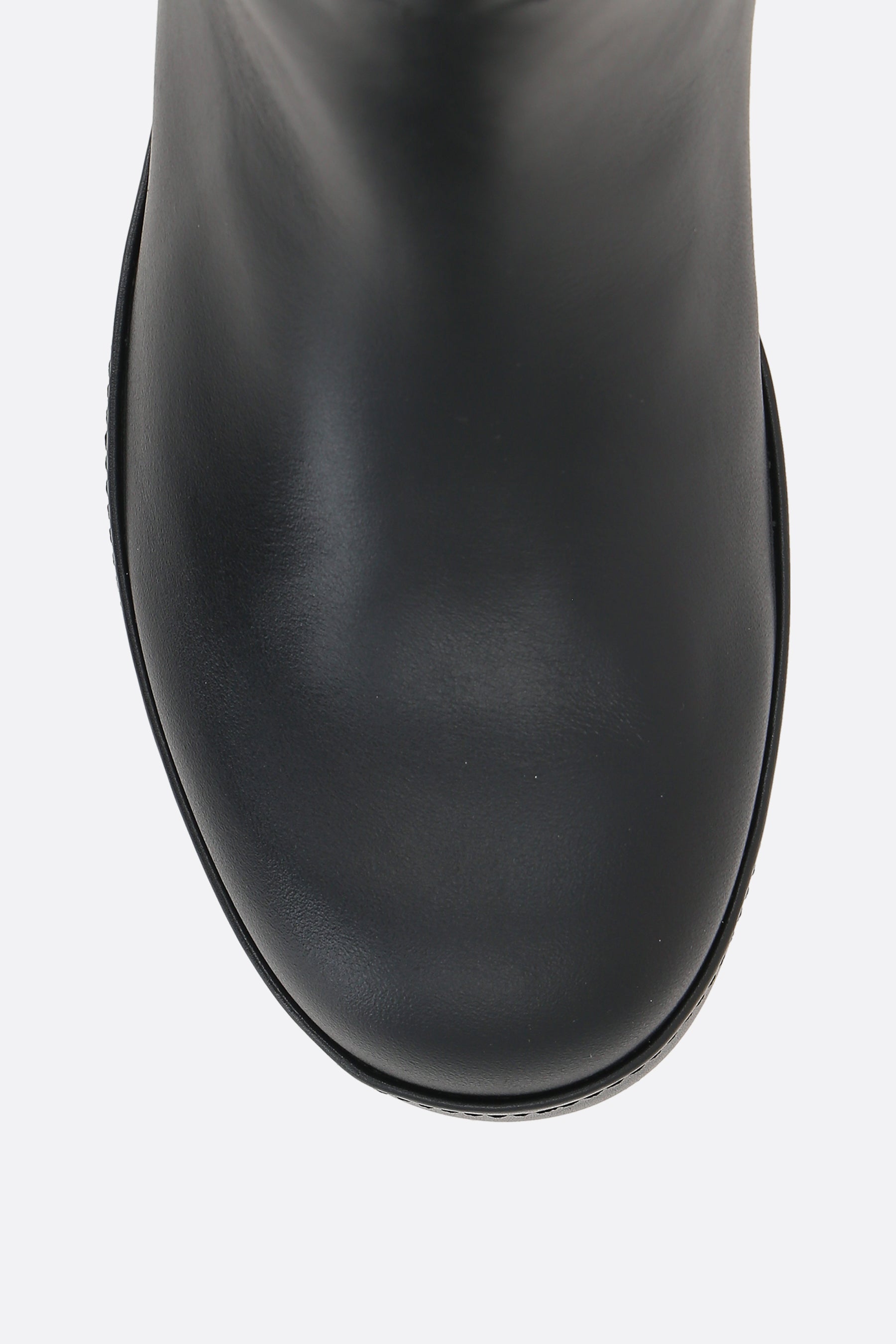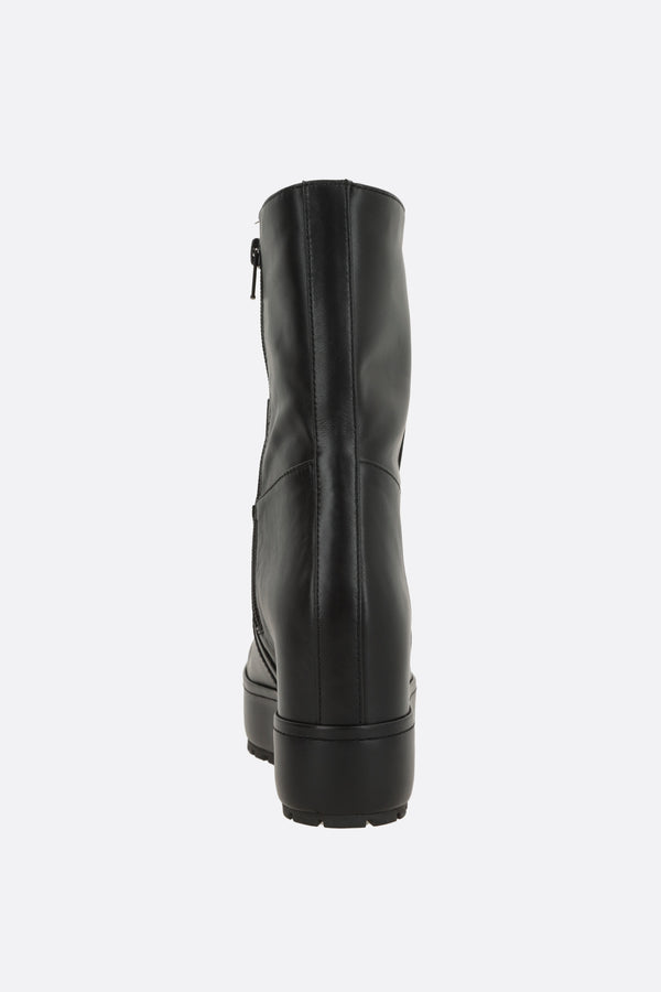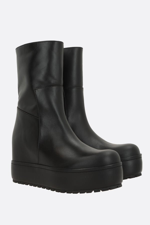 Ankle boot by Paloma Barceló made of black lux nappa leather. Features a round toe, side zip closure, internal wedge, leather lining, and a rubber truck sole.
