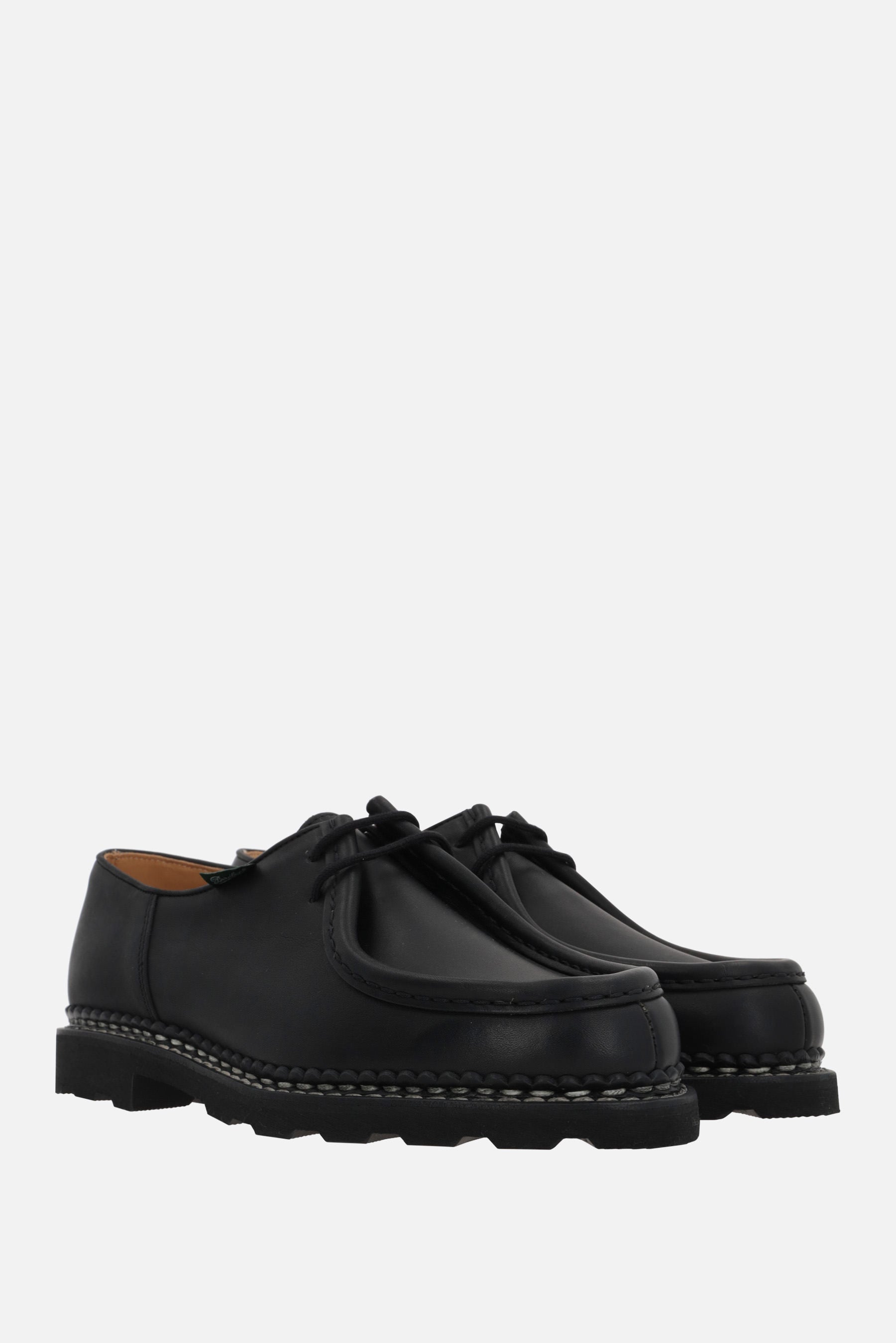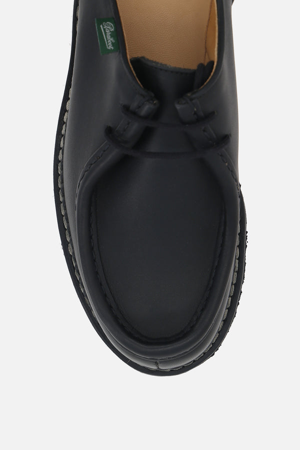 Paraboot derby shoes crafted in black nubuk. Featuring lace-up closure, a round-toe silhouette, leather lining and rubber sole. The design is completed by the unmistakable logo label on side.