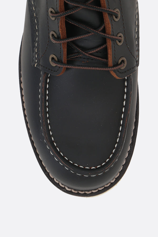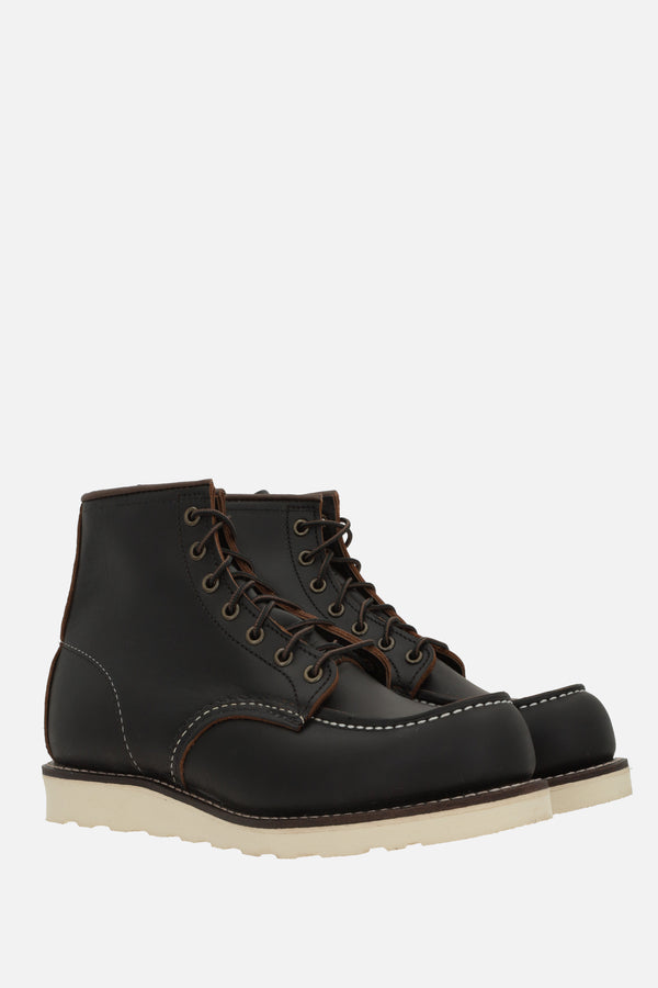 Red Wing combat boots crafted in smooth black leather. Featuring lace-up closure, a round-toe silhouette, leather lining and rubber sole.