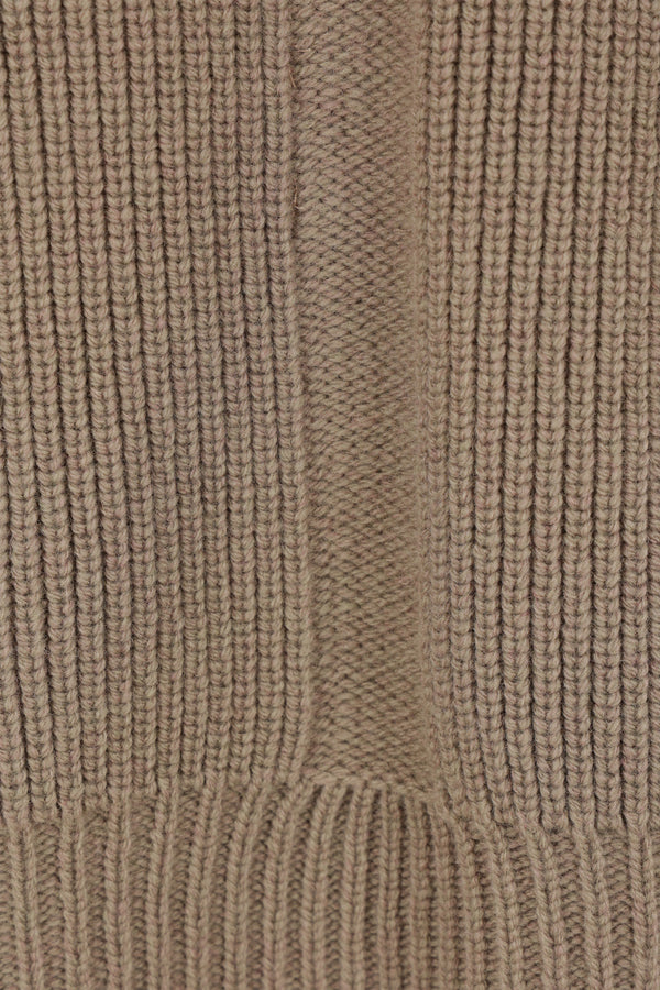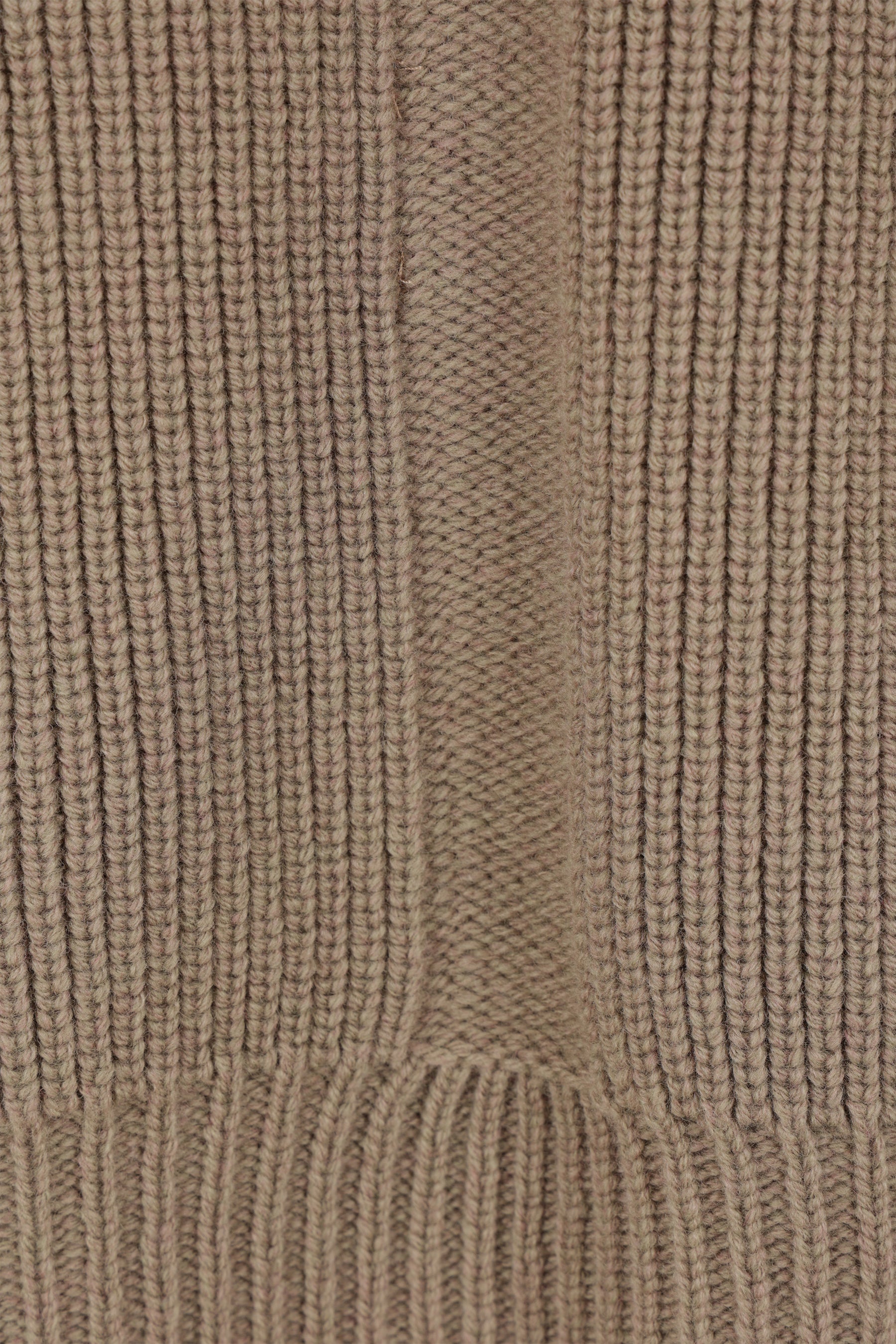 Rick Owens' pullover crafted in dust grey ribbed-knit wool. It features high neck with back V-neckline, long sleeves and straight hem with small side slits.