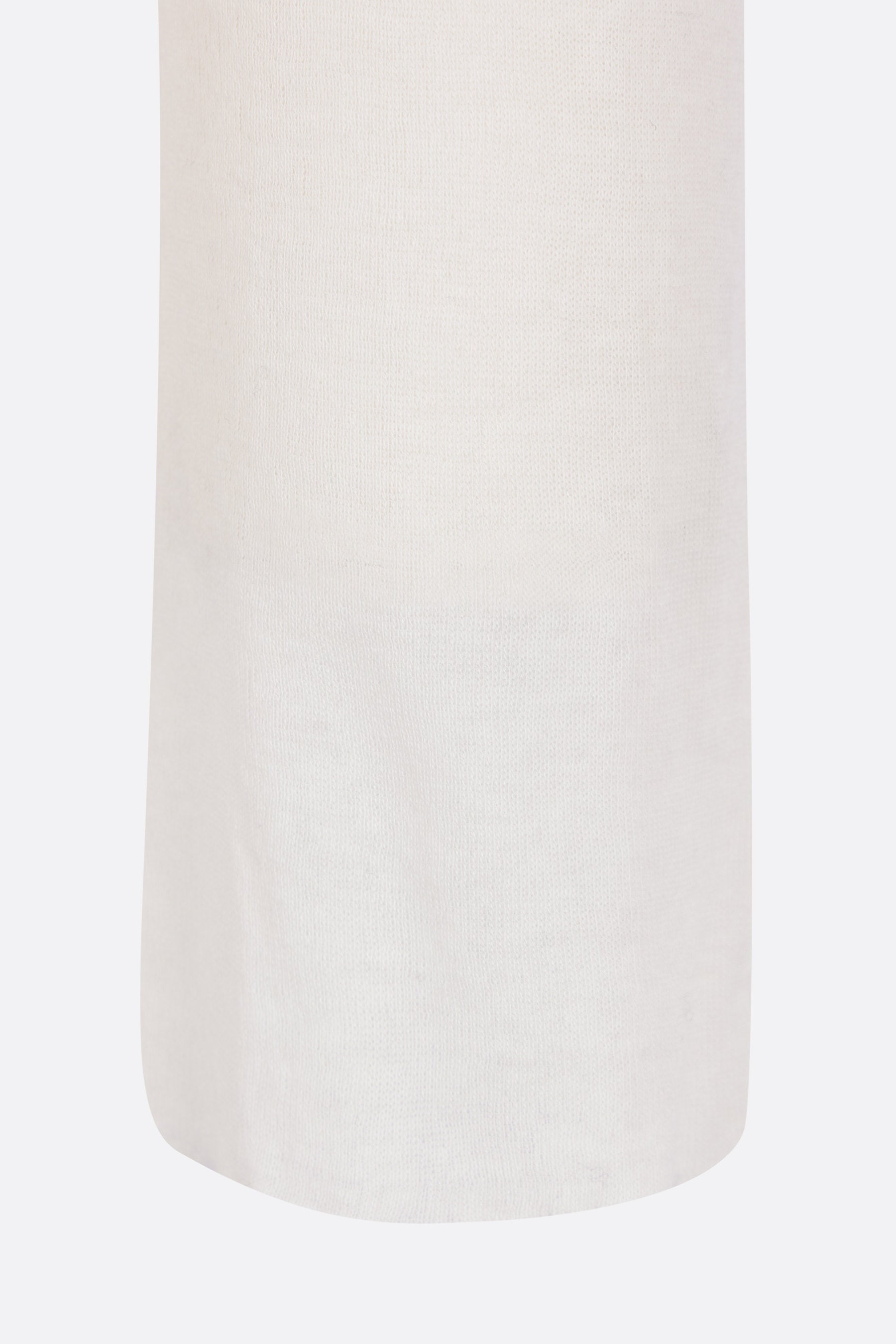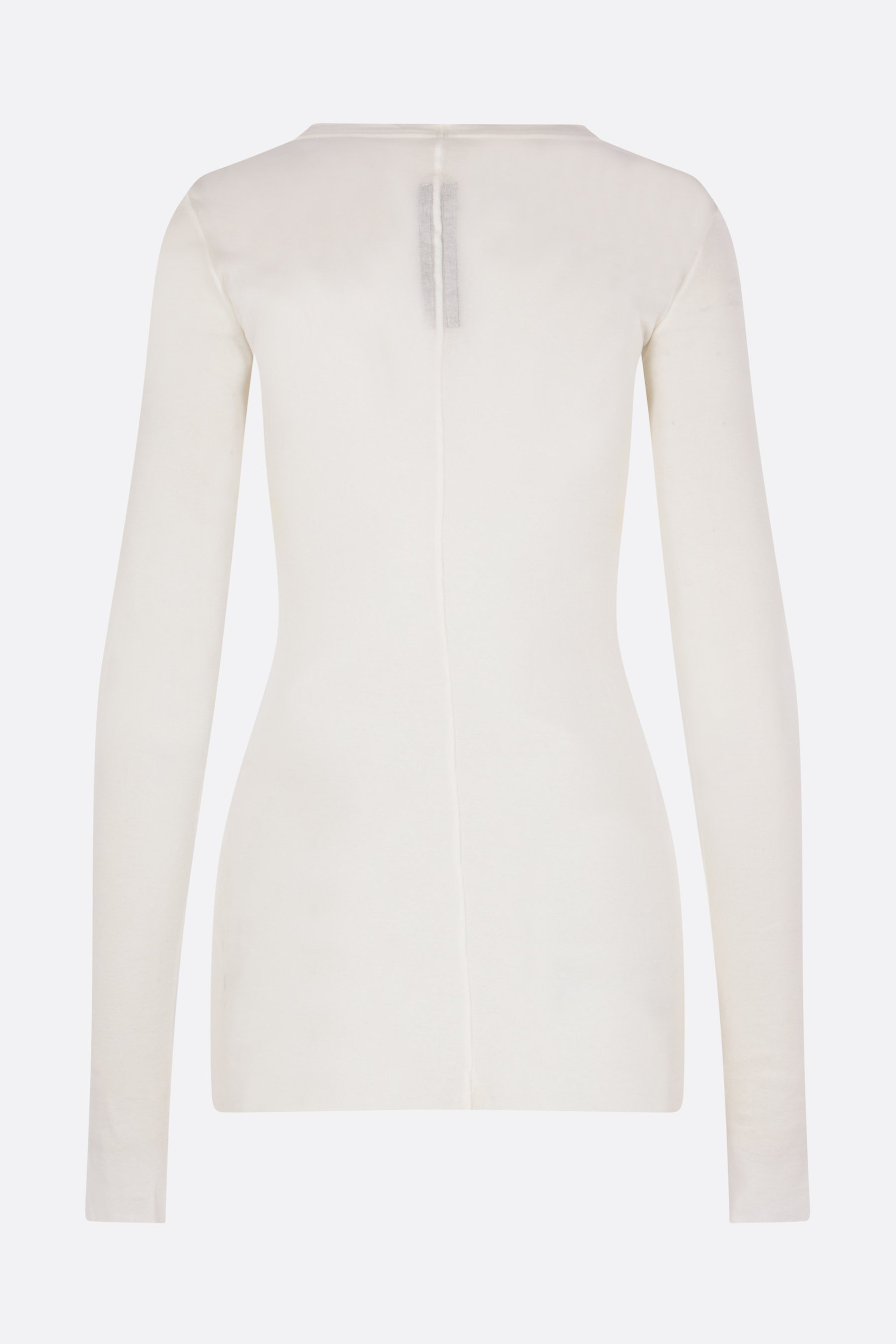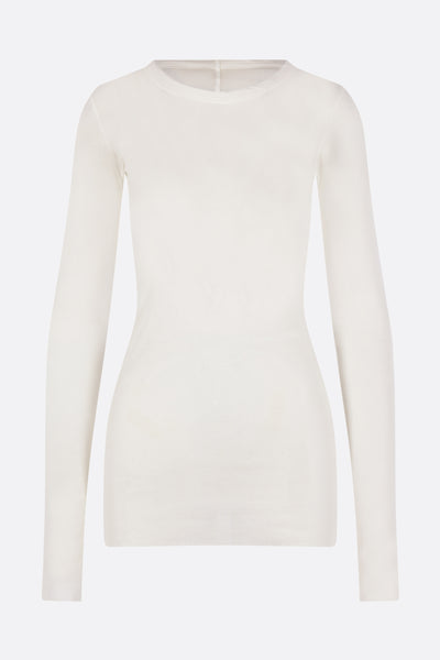 Rick Owens t-shirt crafted from ribbed milk-white cotton jersey. Featuring a crew neckline, long sleeves, straight hem, and raw-cut edges.
