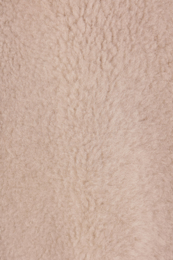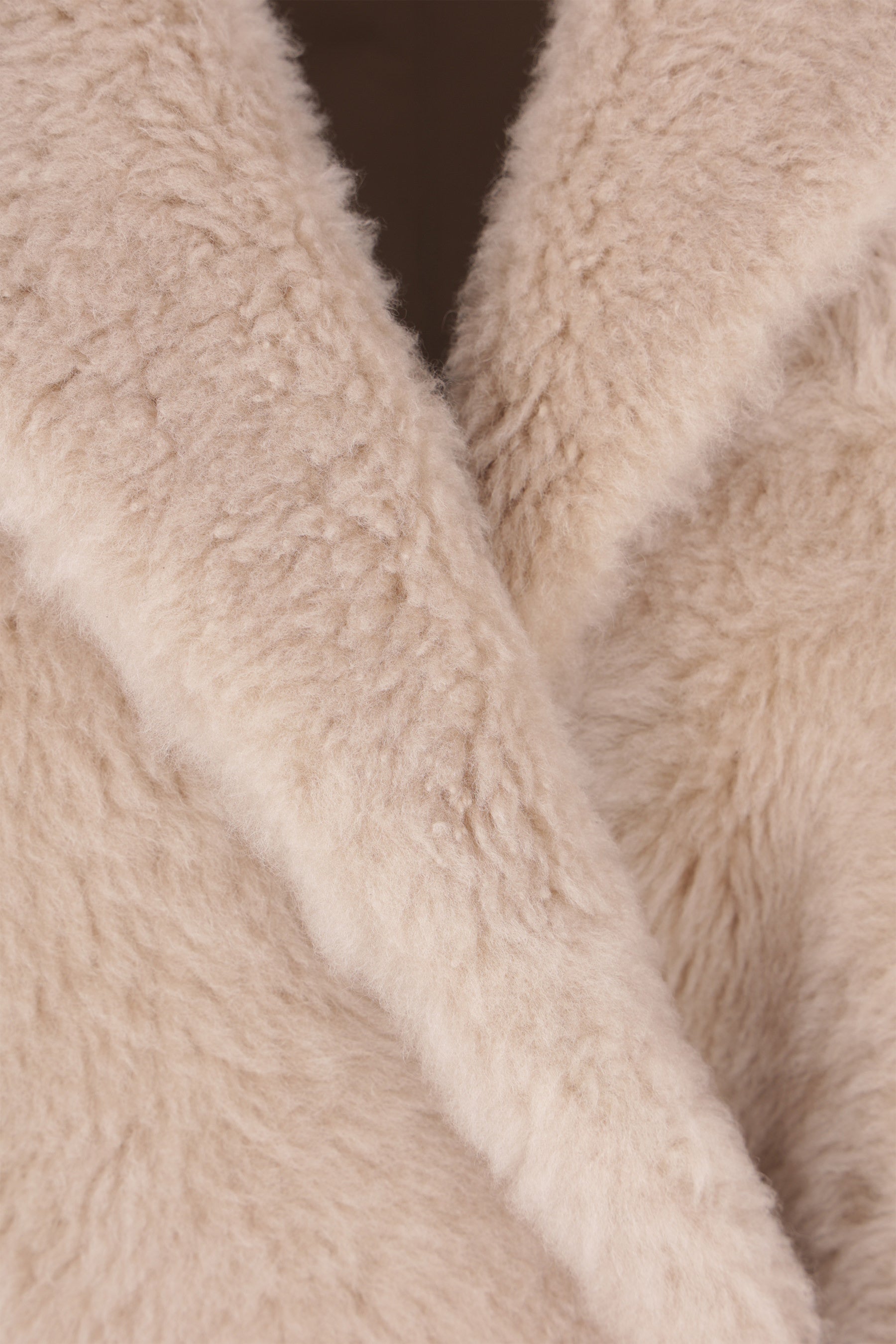 'S Max Mara single-breasted coat made from beige shearling. Features a classic notch lapel, front hook closure, hidden side pockets, long sleeves, and leather interior.