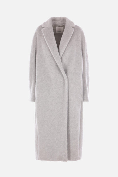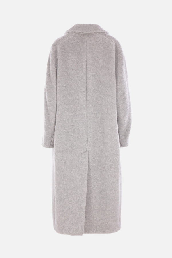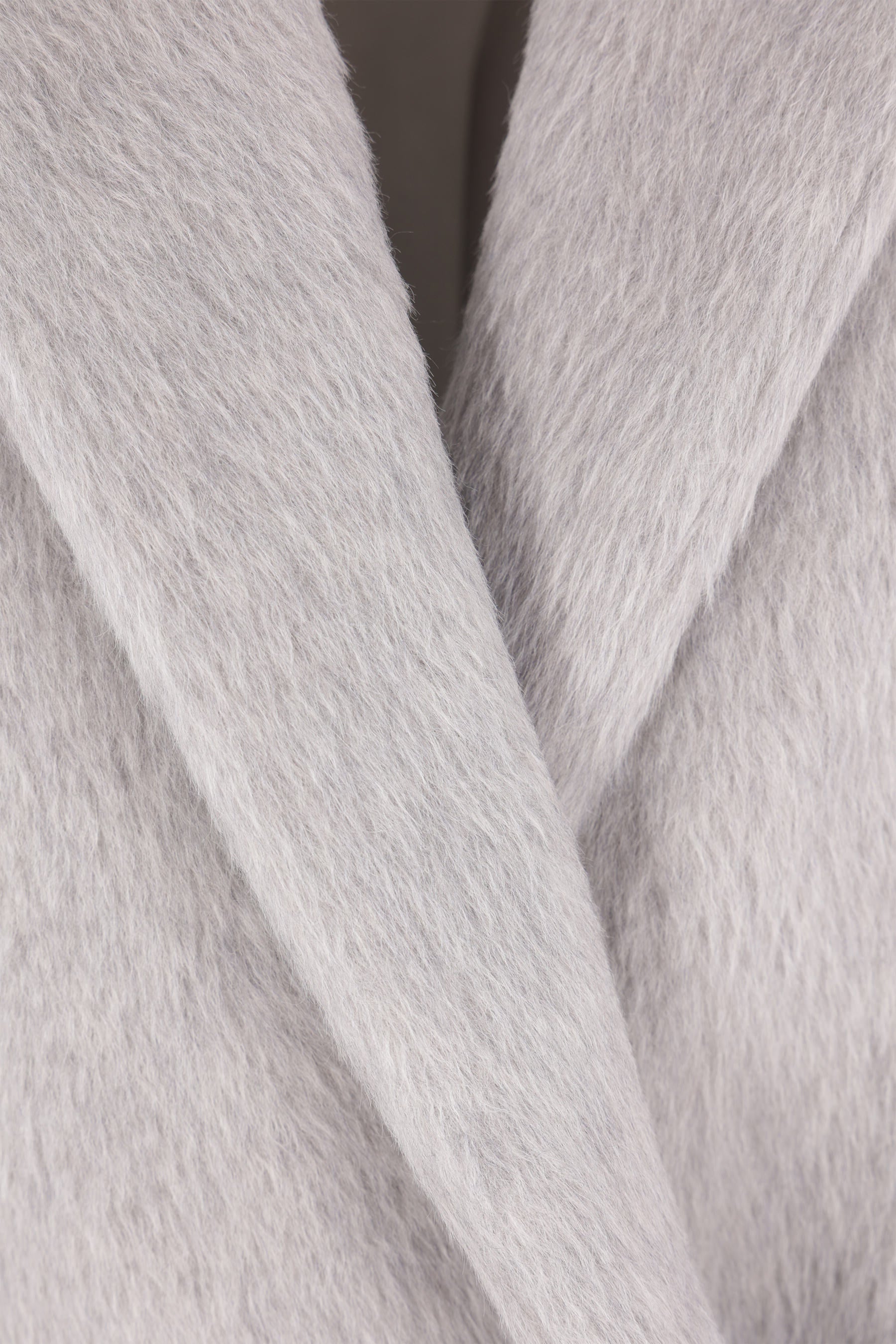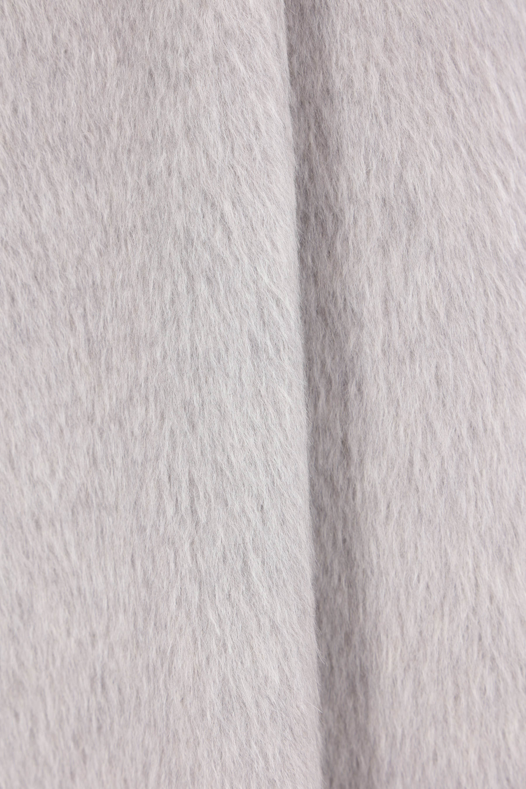 'S Max Mara double-breasted coat made from light grey alpaca and wool. Features a classic notch lapel, front button closure, kimono sleeves, hidden side pockets, central back vent, and lined interior.