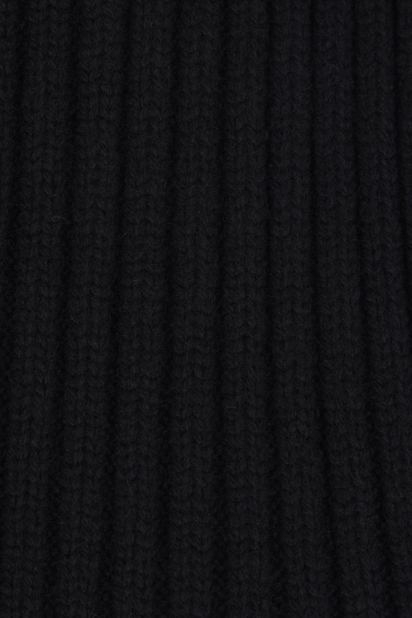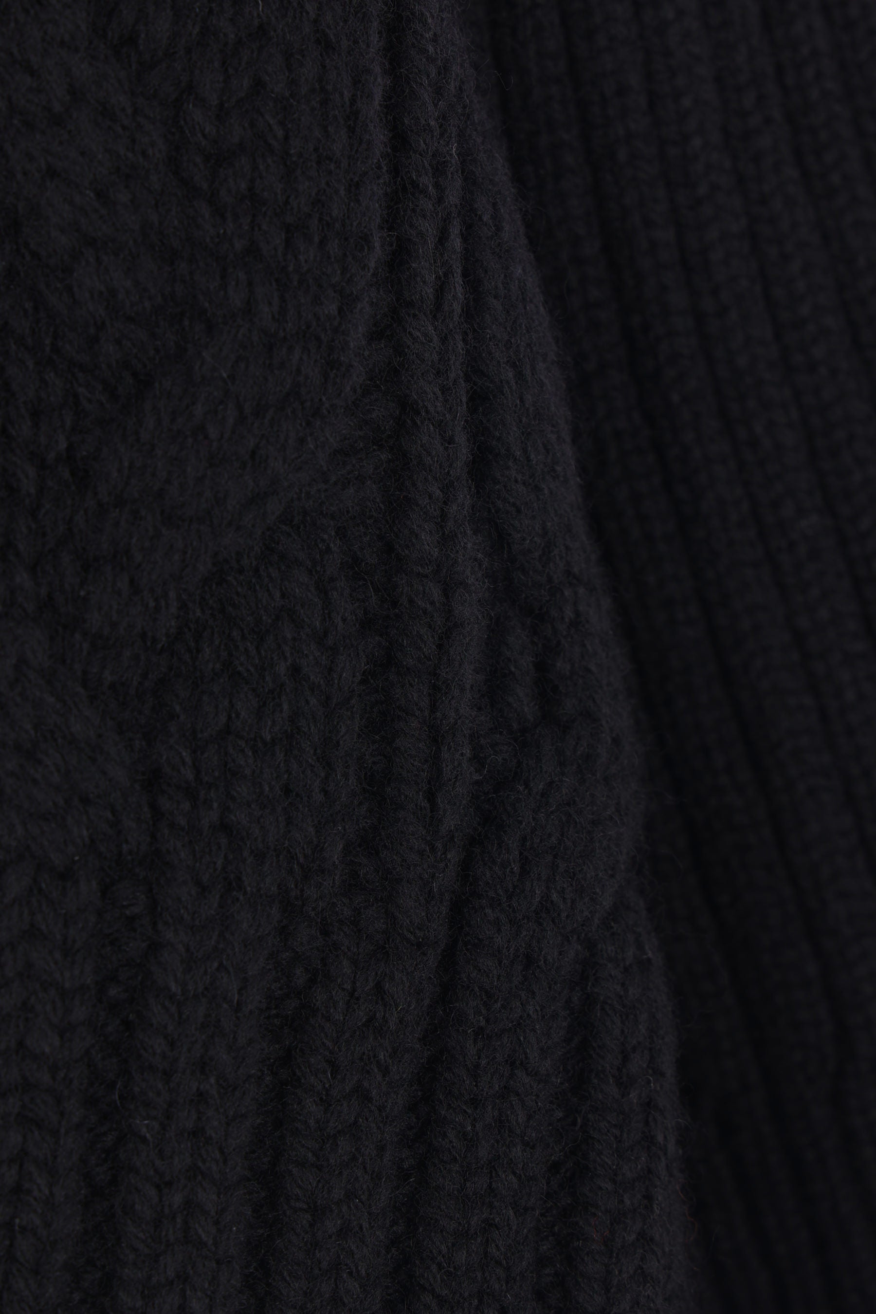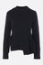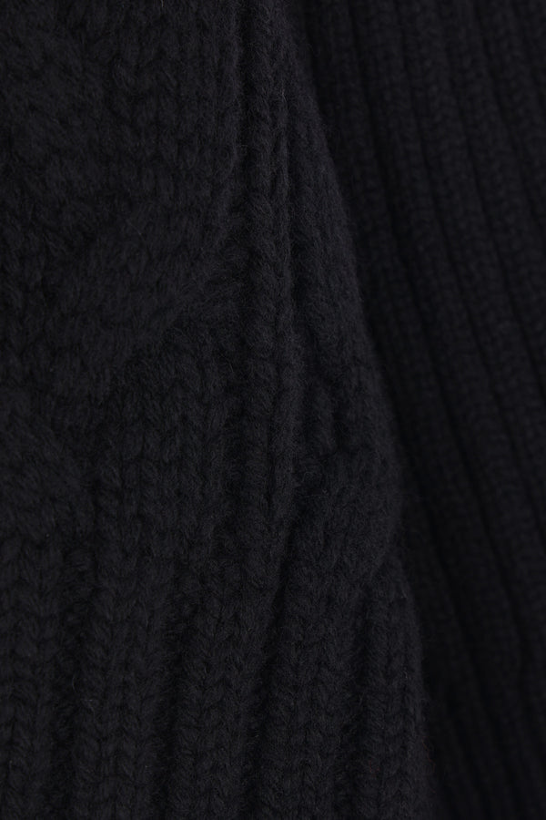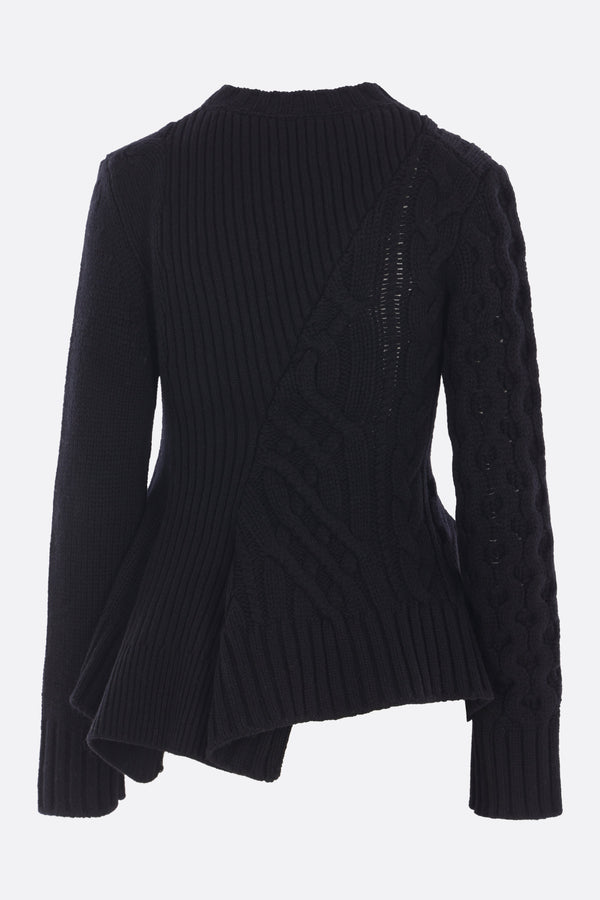 Sacai sweater crafted from black wool-blend with contrasting knit details. Featuring a crew neckline, long sleeves, ribbed trims, and an asymmetric hem.