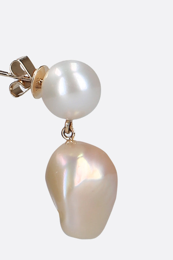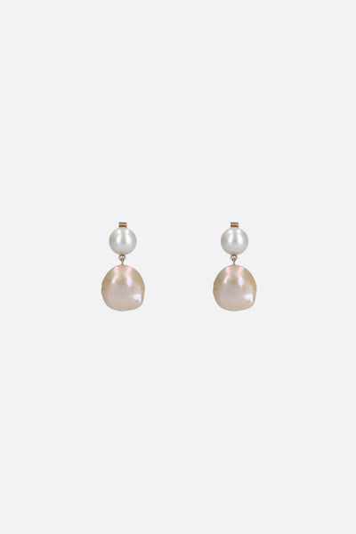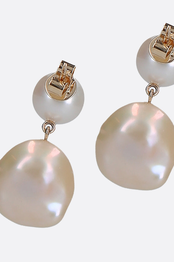 Sophie Billie Brahe drop earrings crafted in yellow gold with freshwater pearls. Featuring butterfly closure for pierced ears. Please note, the earrings are crafted with natural pearls and every pearl is unique – variation will occur.