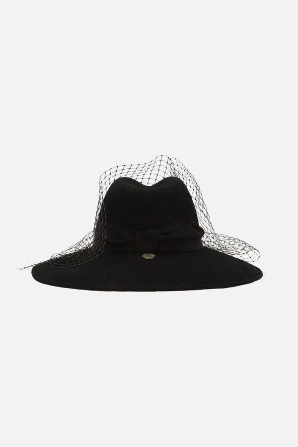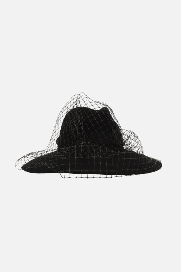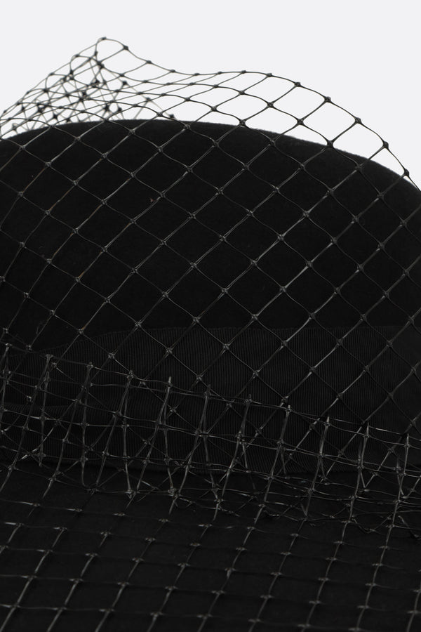 veiled fedora hat in wool felt