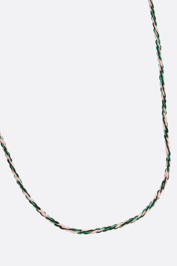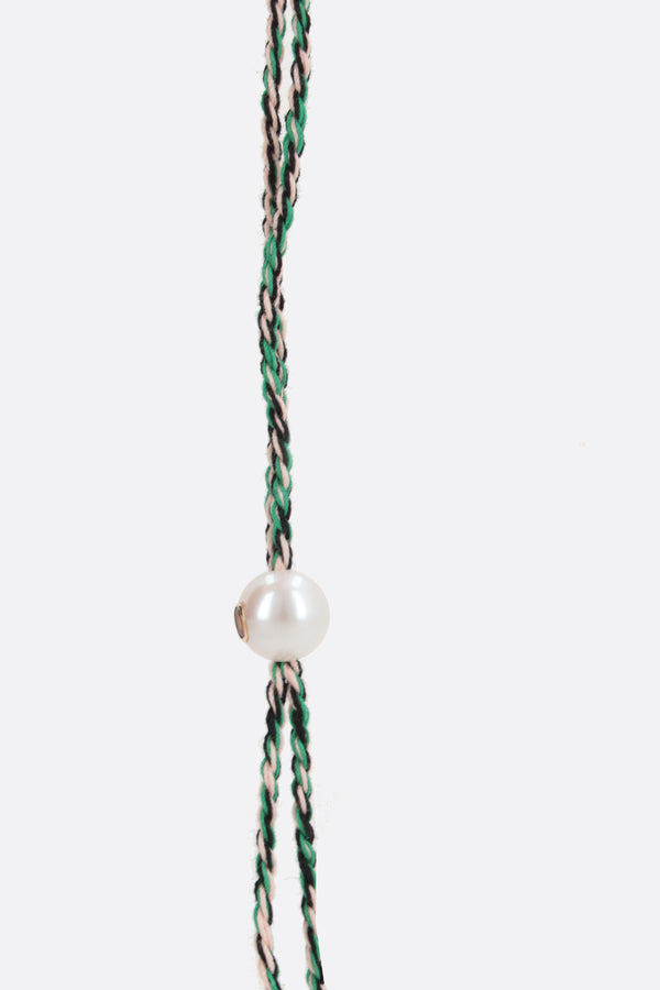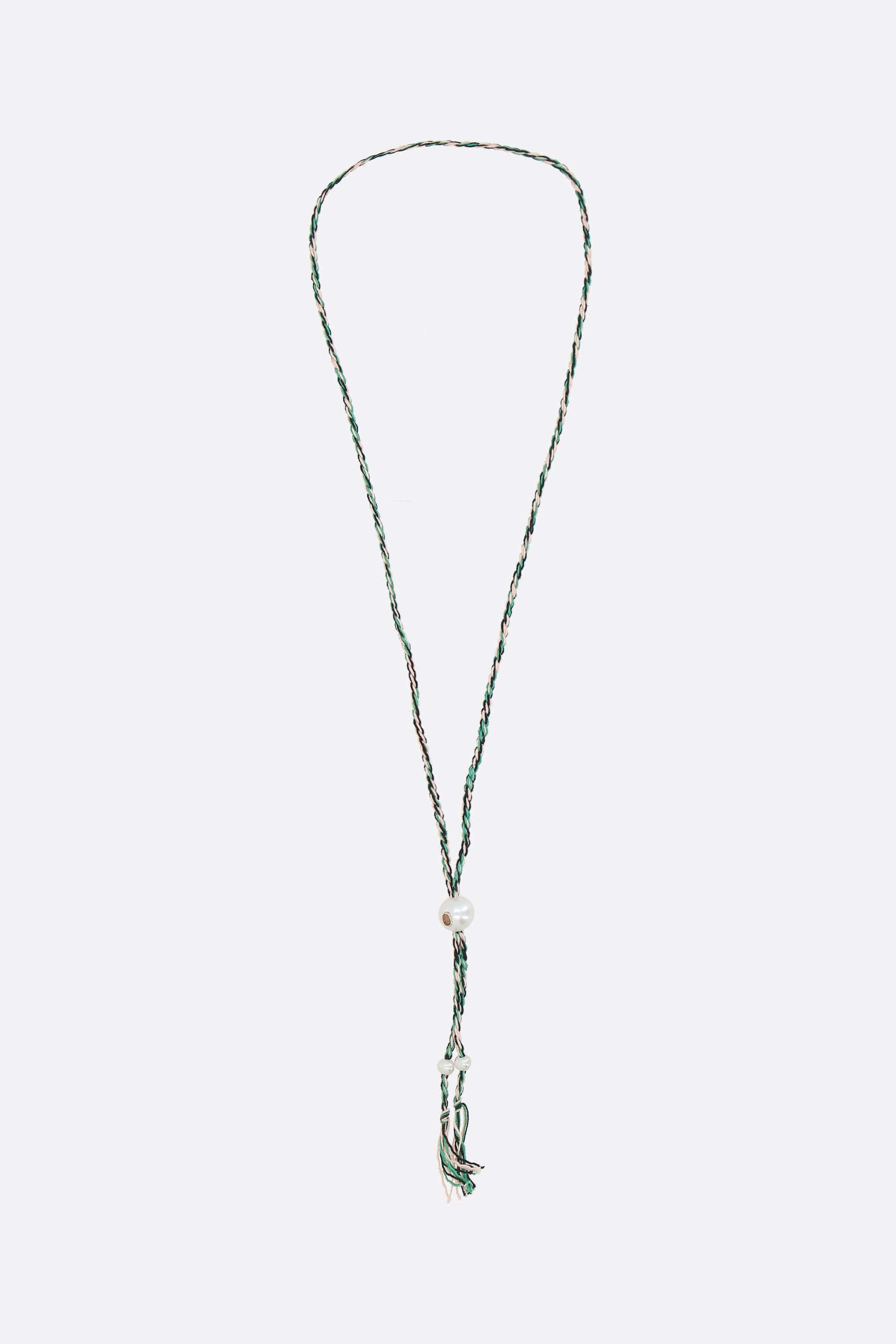 Tamara Taichman's adjustable necklace crafted in multicolor cord with pearl decorated by changing garnet and pearls at the ends. Each piece of jewellery is unique, and is made entirely by hand using traditional craftsmanship.Colours and shades of stone may vary.