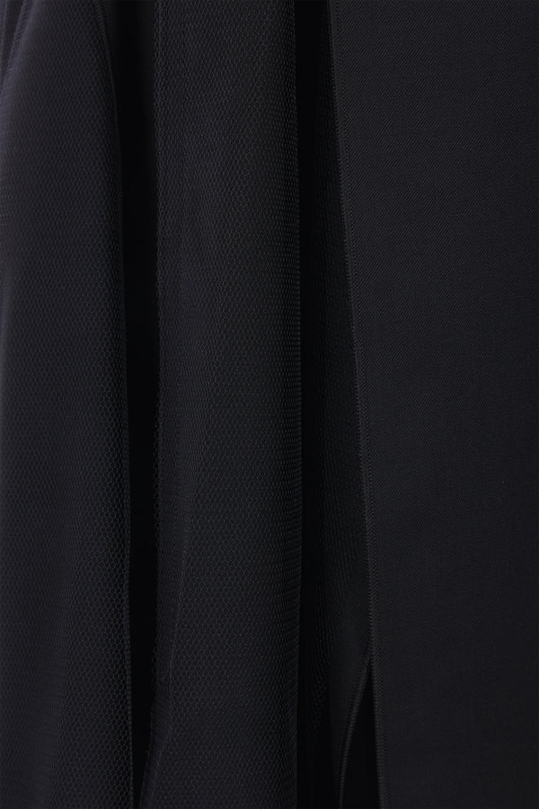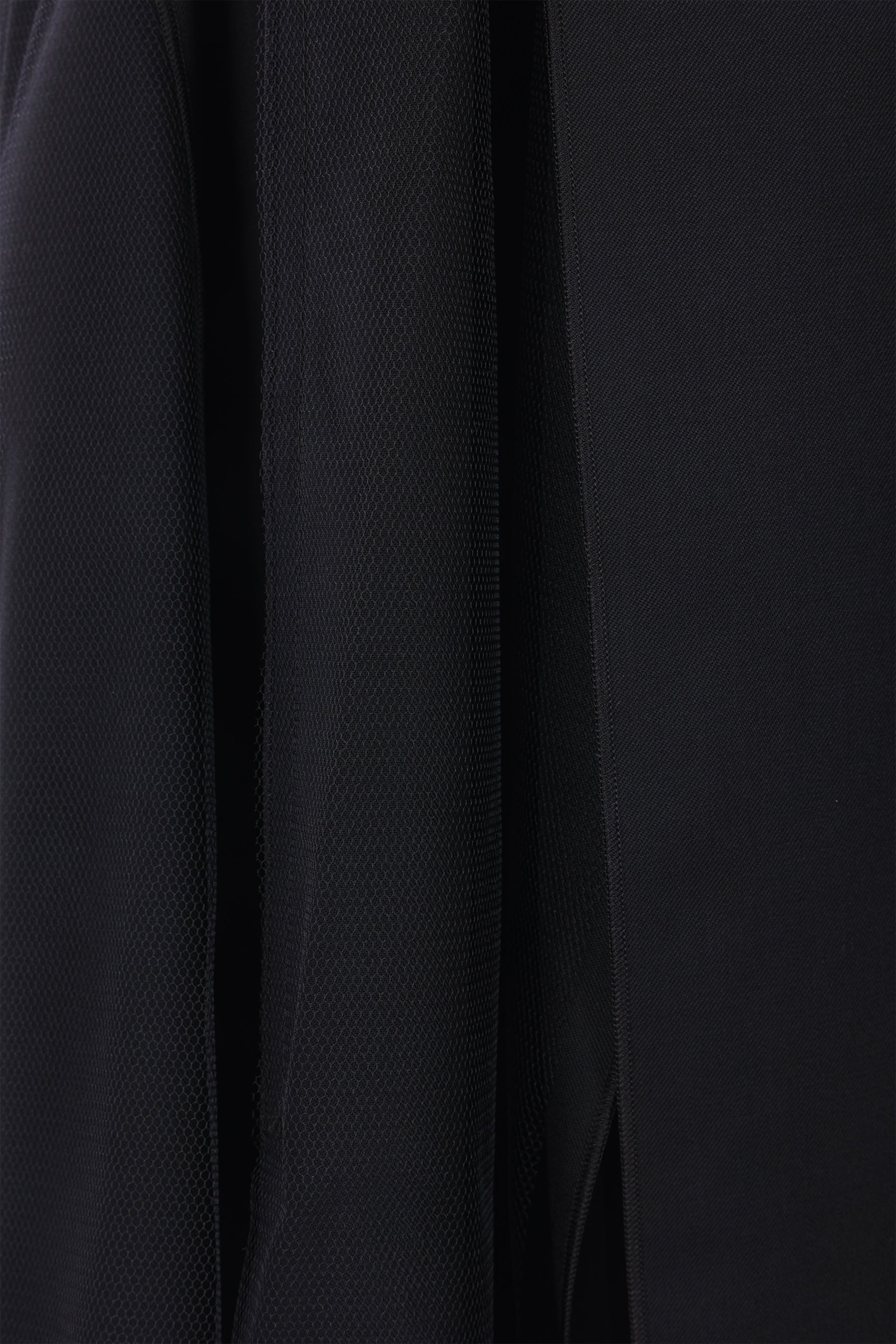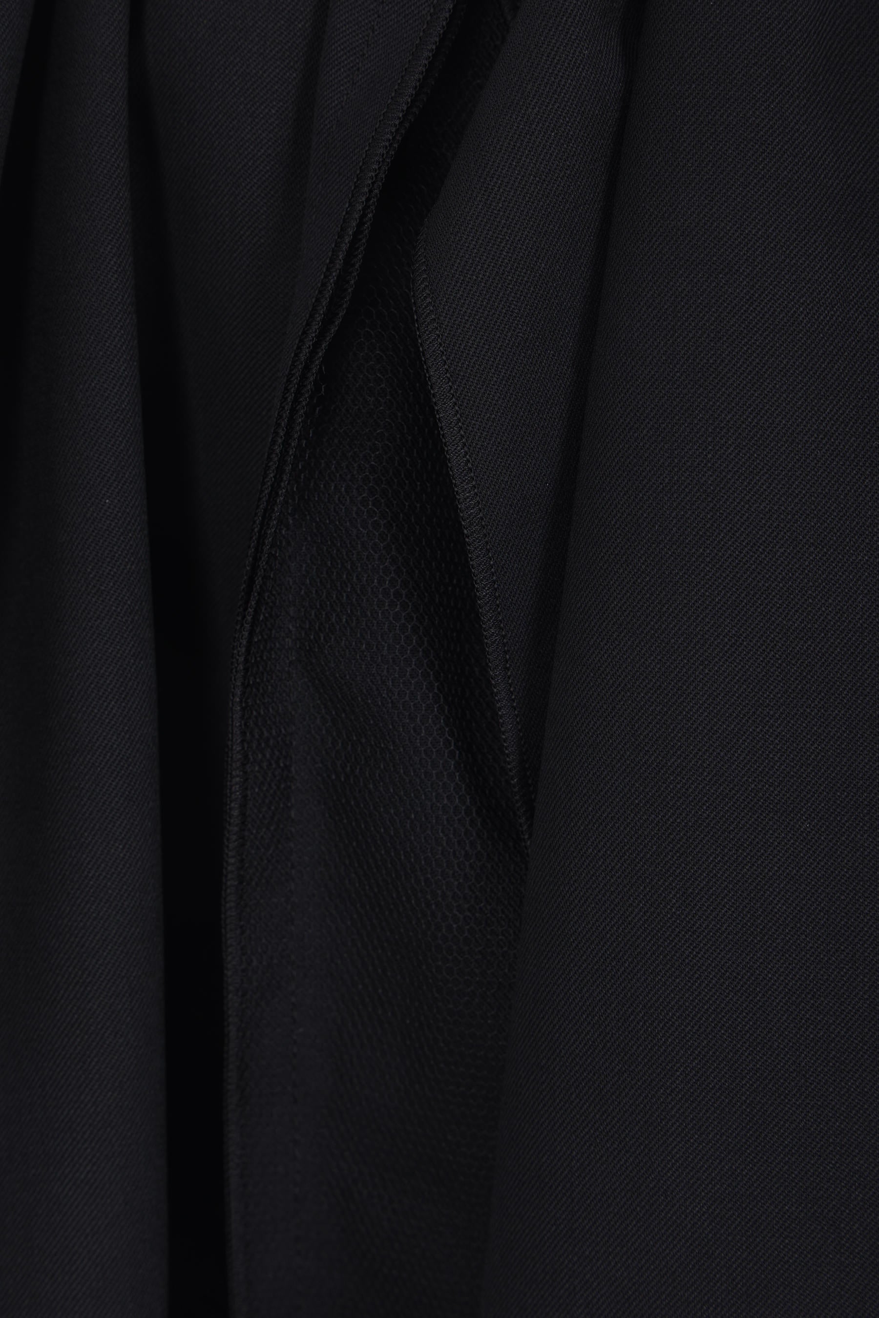 Tao Comme des Garçons circle skirt made from layered panels of black tulle and wool blend gabardine. Features internal button closure at the waist and unlined interior.