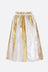Tao Comme des Garçons circle skirt made from layered panels of white tulle and gold laminated paper-effect fabric. Features internal button closure at the waist and unlined interior.