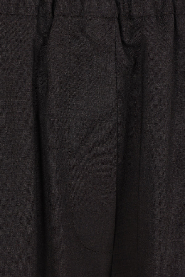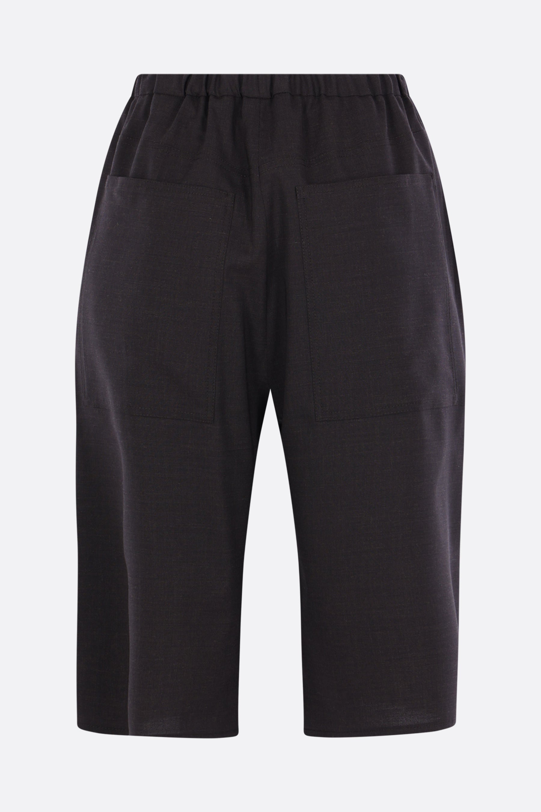 Ter et Bantine bermuda shorts crafted from brown stretch wool. They feature an elasticated waistband, multiple pockets, and an unlined interior.