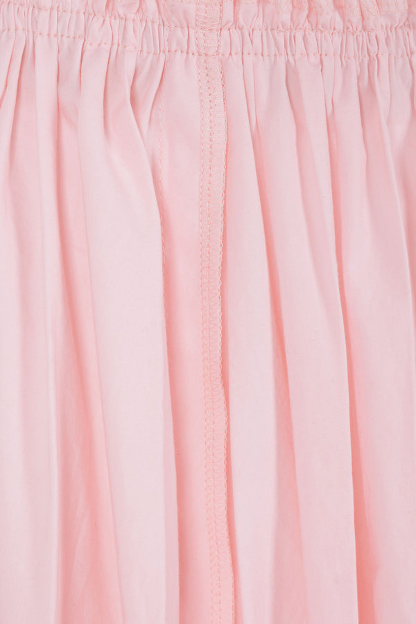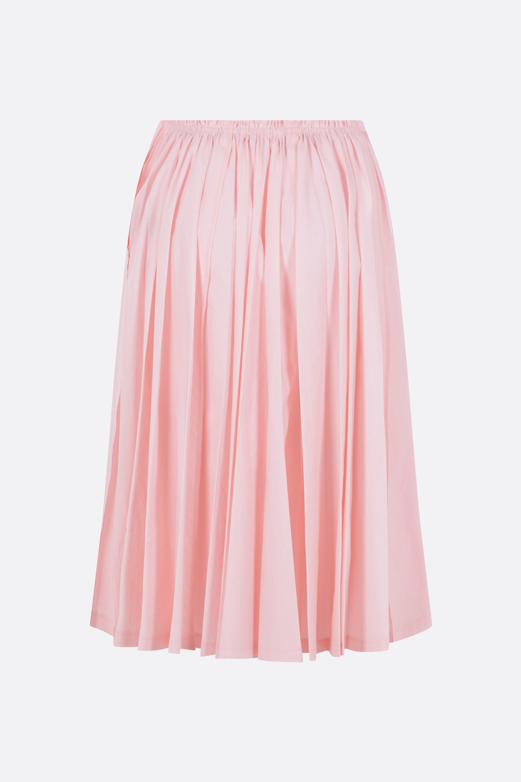 Ter et Bantine pleated skirt crafted from light pink cotton poplin. It features an elasticated waistband, side zip-and-hook closure, visible stitching, and an unlined interior.
