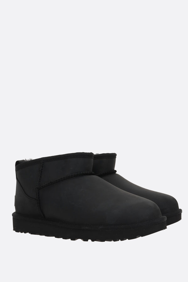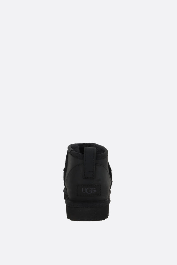 Ugg ankle boots crafted from black nubuck. Characterized by a round toe, shearling linings with a UGGplush™ footbed made from regenerated wool and lyocell, and a sugarcane EVA sole.