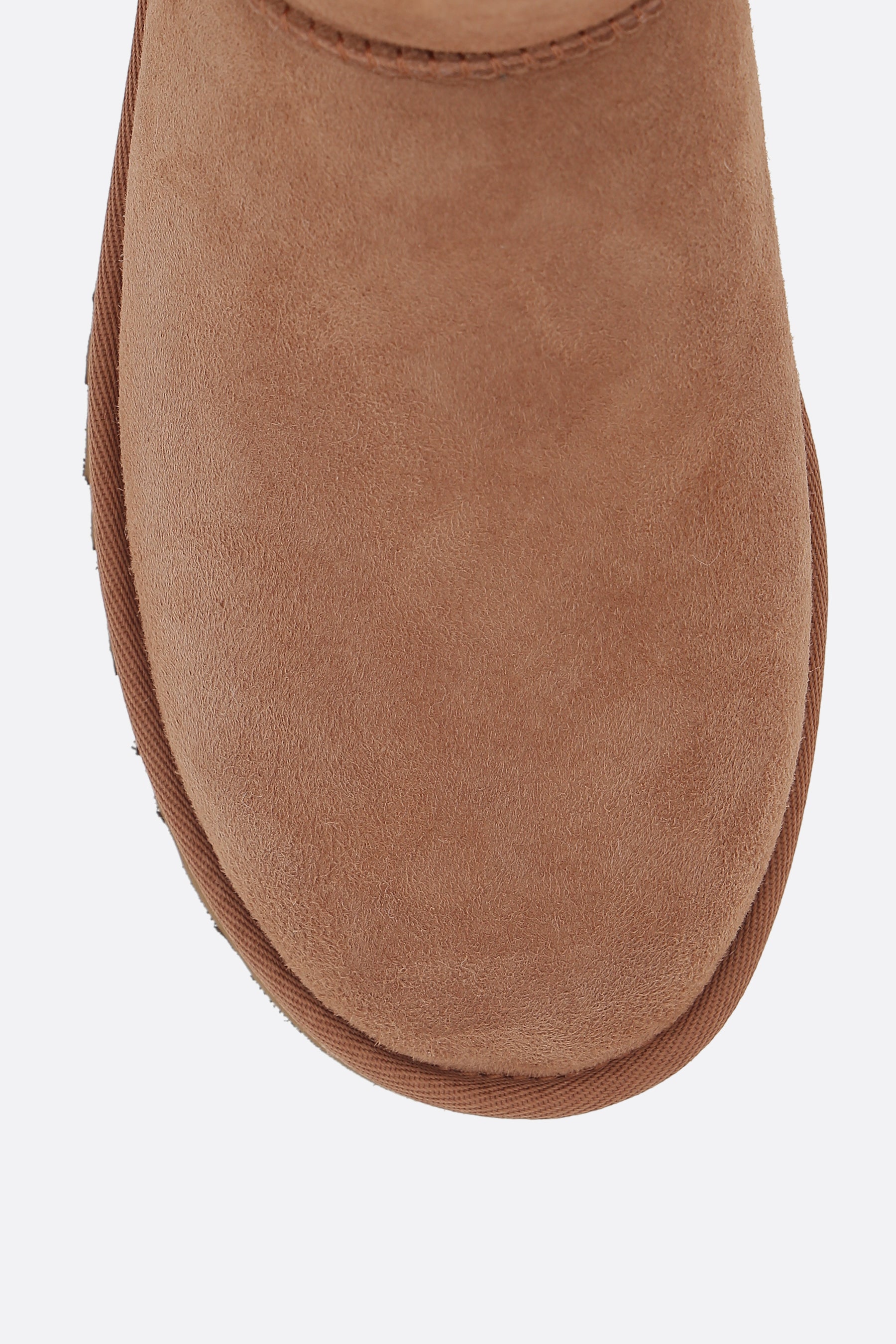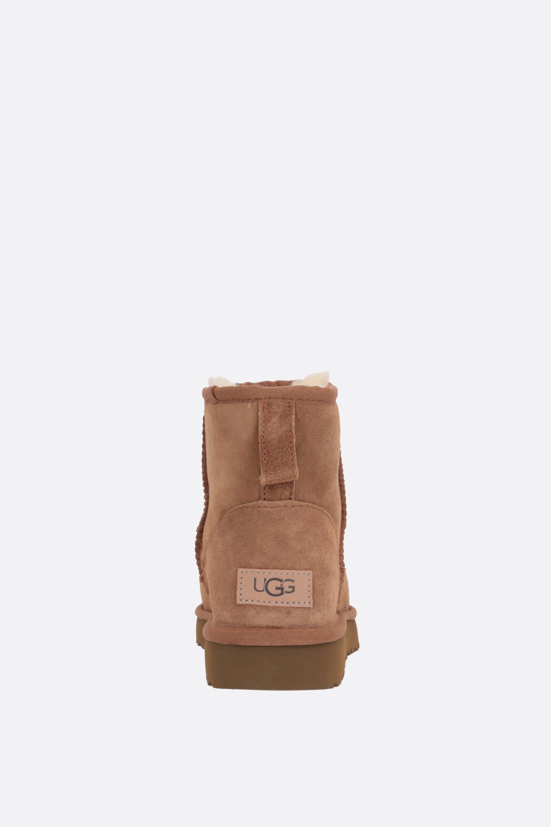 Ugg ankle boots crafted in light brown suede with overlock stitch detailing on seams. Featuring a round-toe silhouette, shearling lining and Treadlite by UGG™ sole. The design is completed by the iconic Ugg patch at heel.