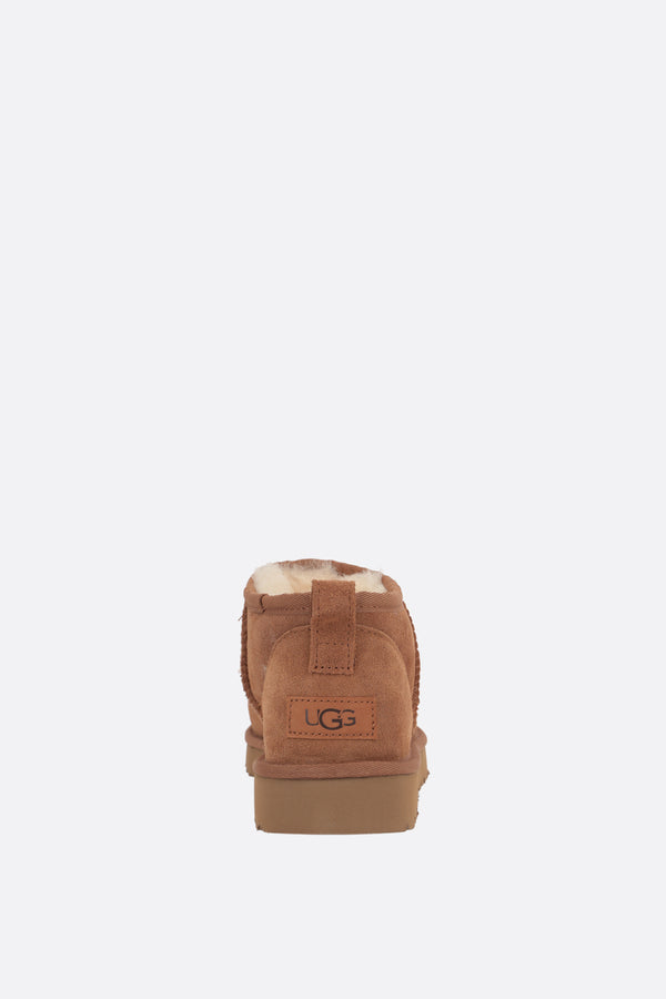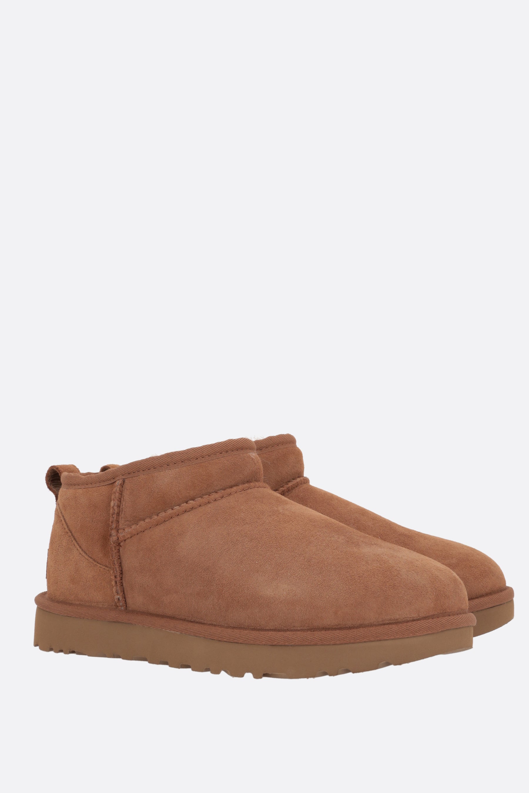 Ugg ankle boots crafted in light brown suede with overlock stitch detailing on seams. Featuring a round-toe silhouette, shearling lining with UGGplush™ upcycled wool and lyocell insole and Treadlite by UGG™ sole. The design is completed by the iconic Ugg patch at heel.