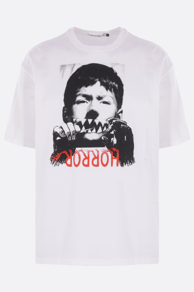 Undercover oversized t-shirt made of white cotton jersey with a graphic print on the front. Featuring a crew neckline, short sleeves, and a straight hem.