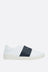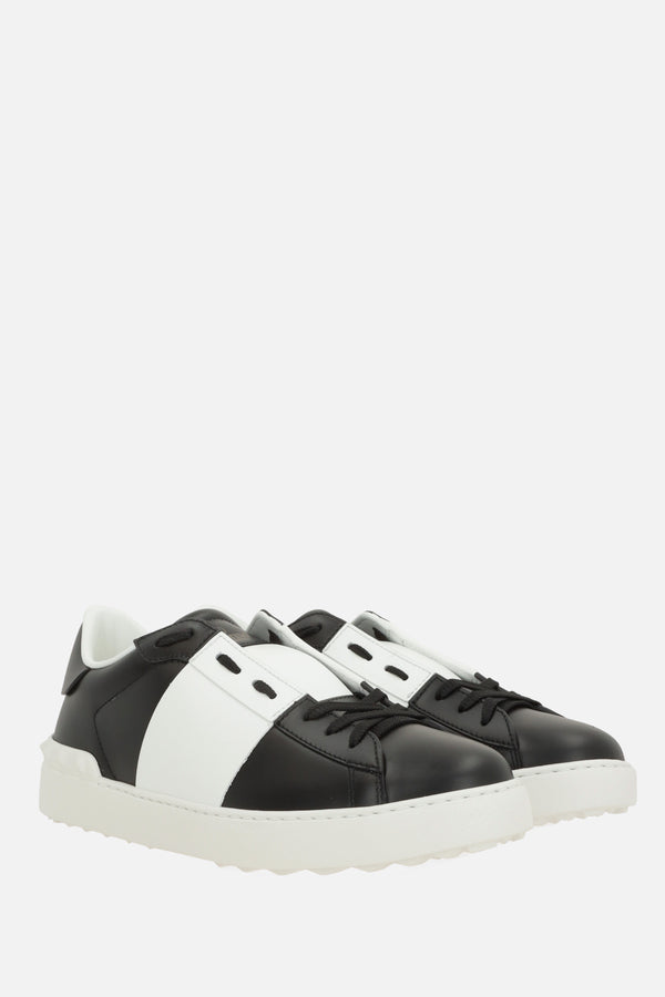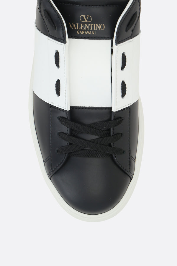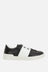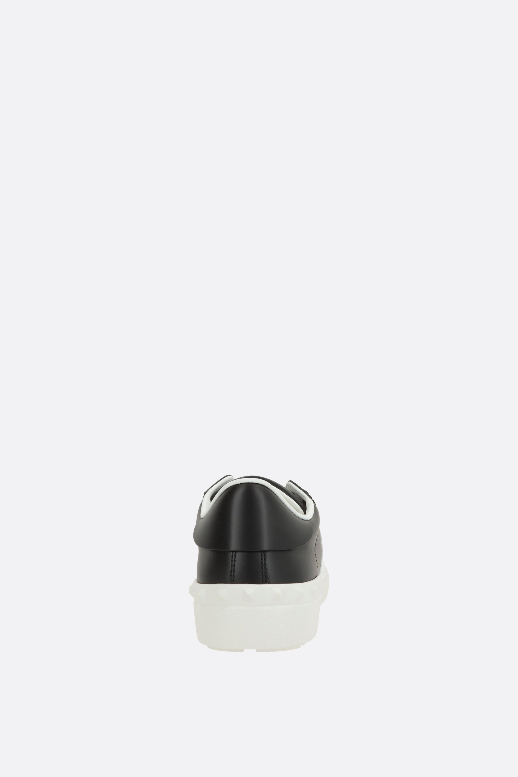 Valentino Garavani low-top sneaker crafted in black smooth leather with contrasting bands in white leather. Featuring lace-up closure, a round-toe silhouette, leather lining and rubber sole. The design is completed by rubber studs around the heel.