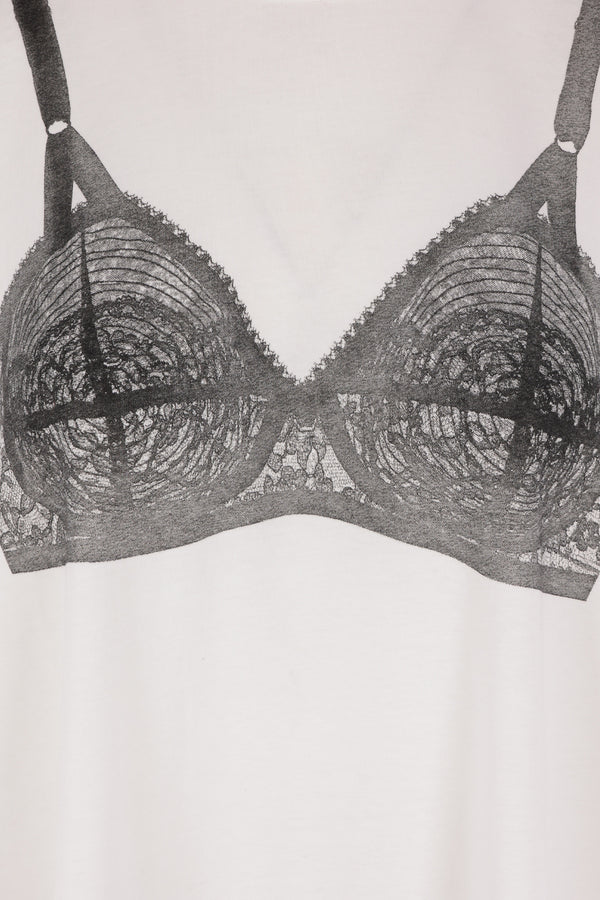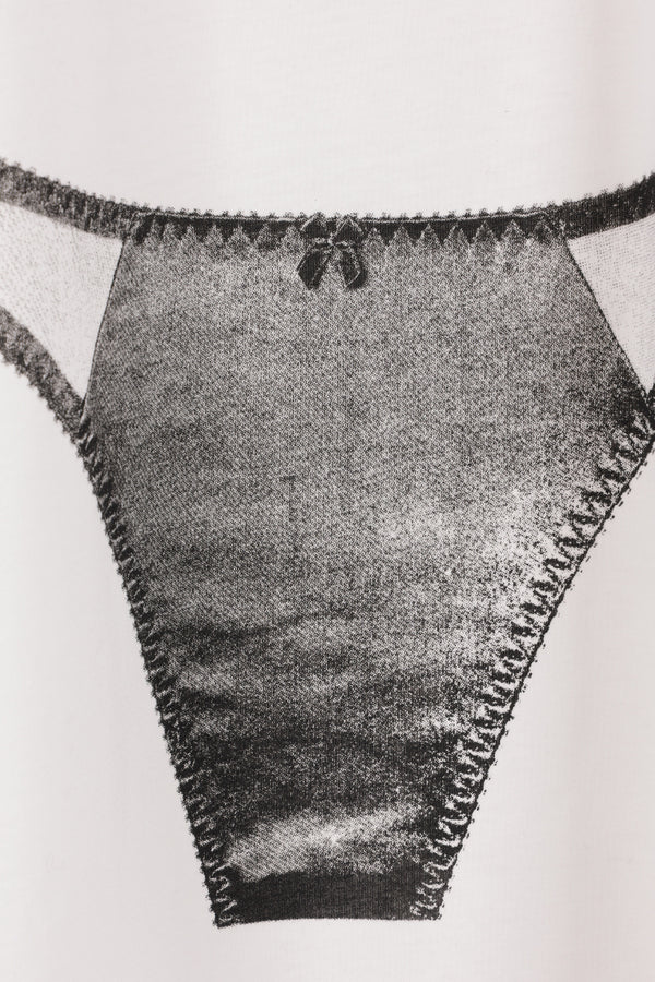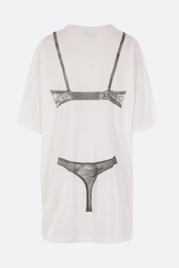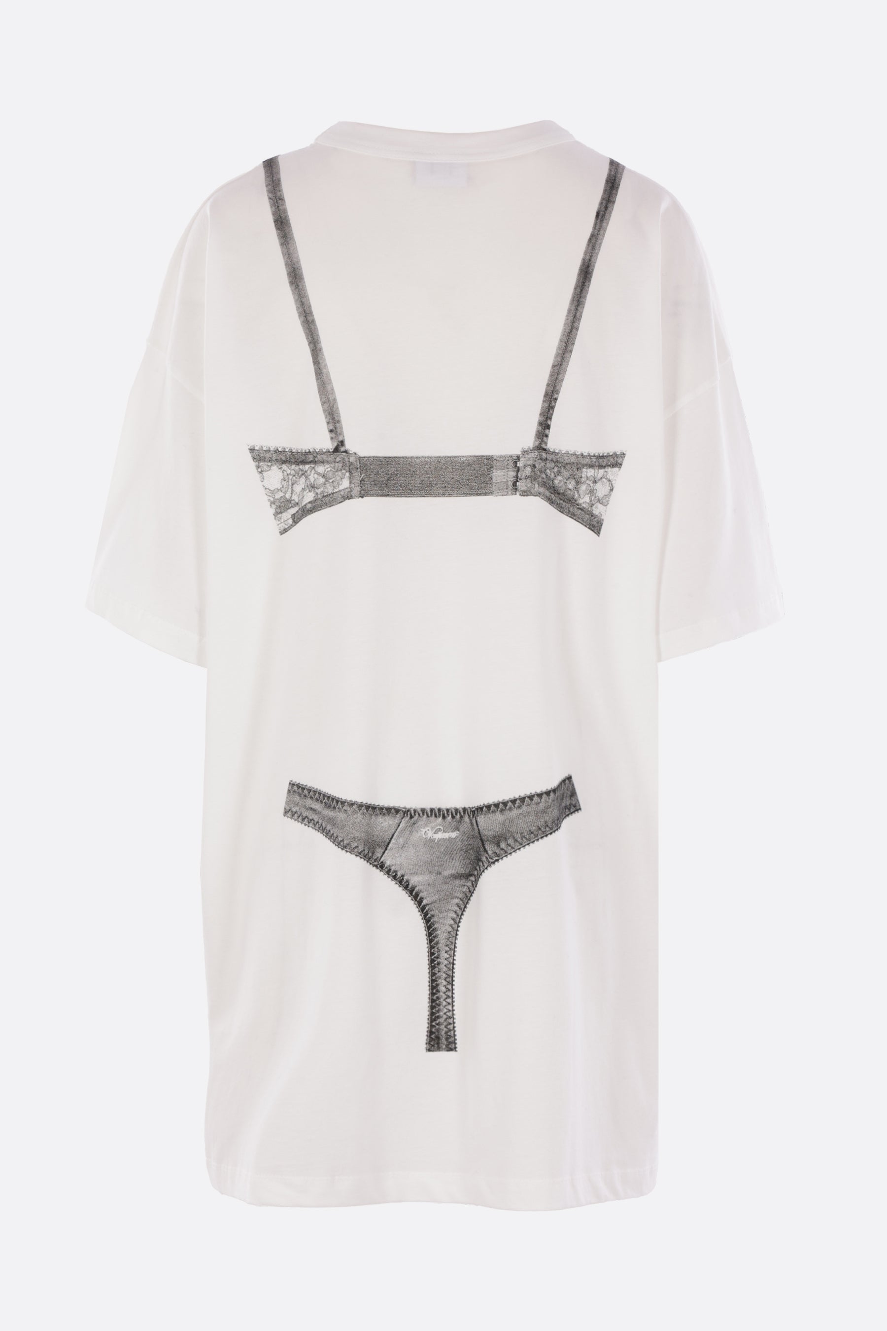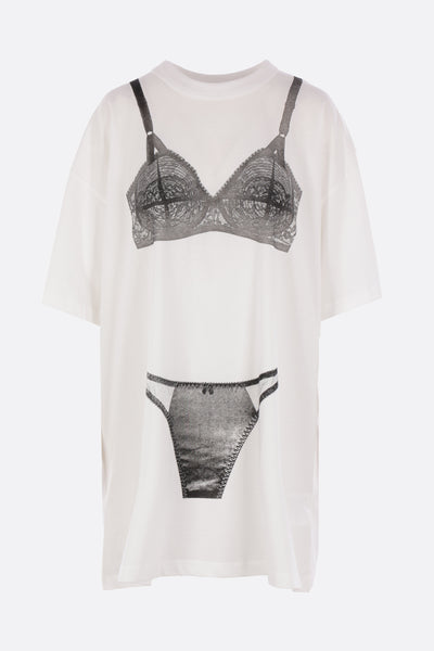 Vaquera oversized dress made of white cotton jersey with Lingerie trompe-l'œil print on both sides. Featuring a round neckline, short sleeves, and straight hem.