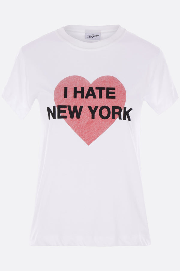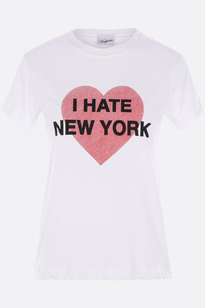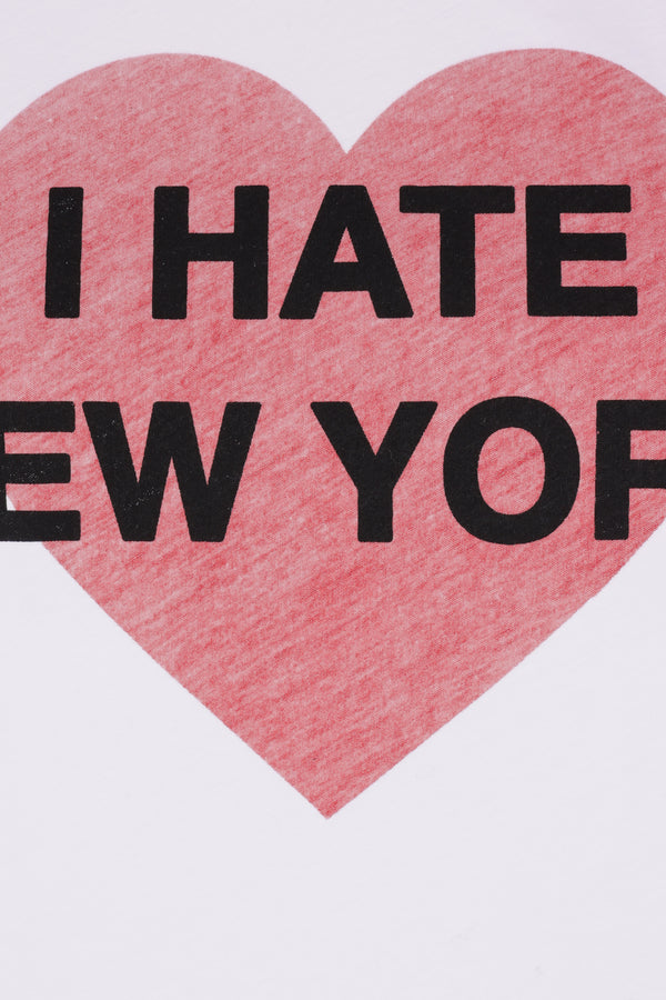 Vaquera T-shirt made of white cotton jersey with front "I Hate New York" print. Featuring a round neckline, short sleeves, and straight hem.
