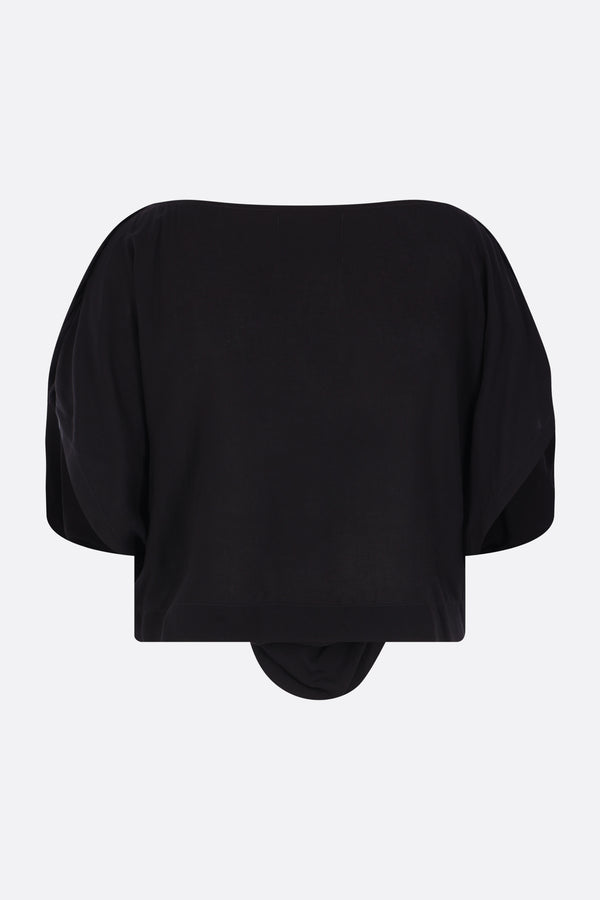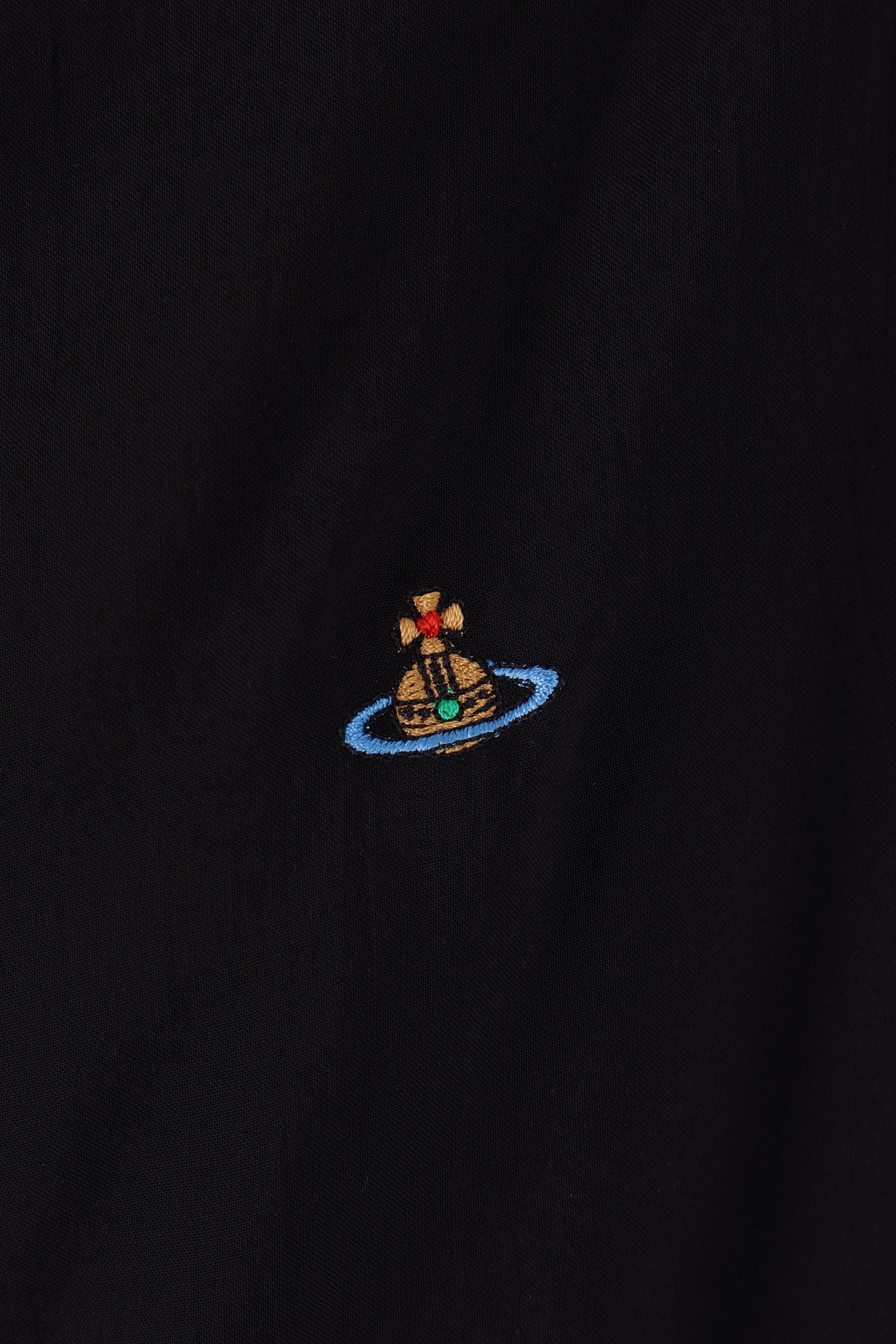 Vivienne Westwood sleeveless heart-shaped top crafted from black viscose. It features a V-neckline and an asymmetrical hem. The design is completed by the iconic embroidered Orb logo on the chest.