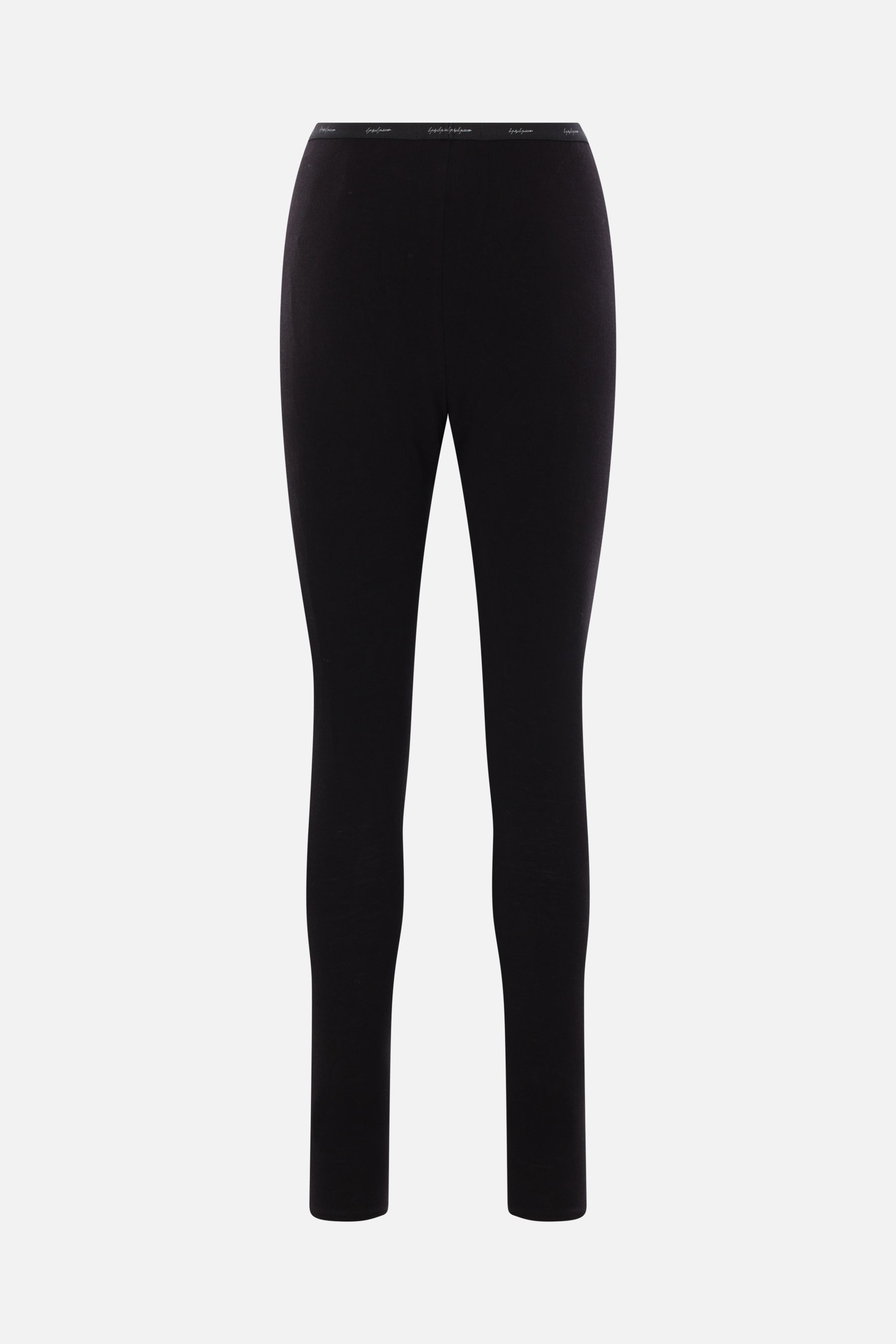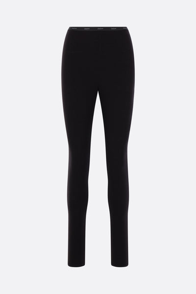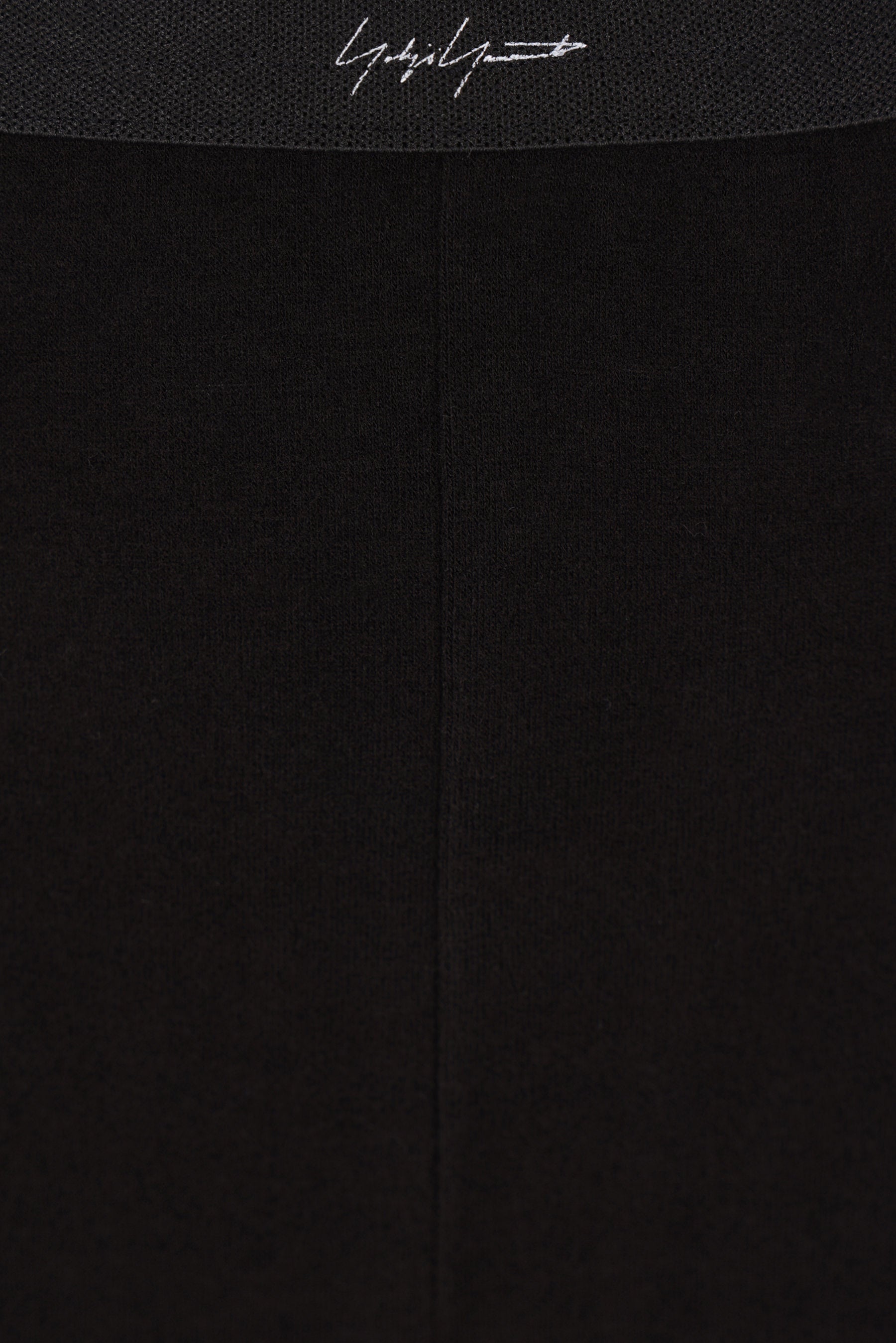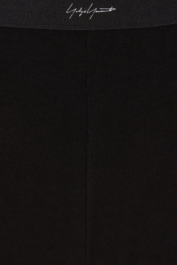 Yohji Yamamoto leggings crafted from black jersey with an elastic waistband featuring a contrasting logo print.