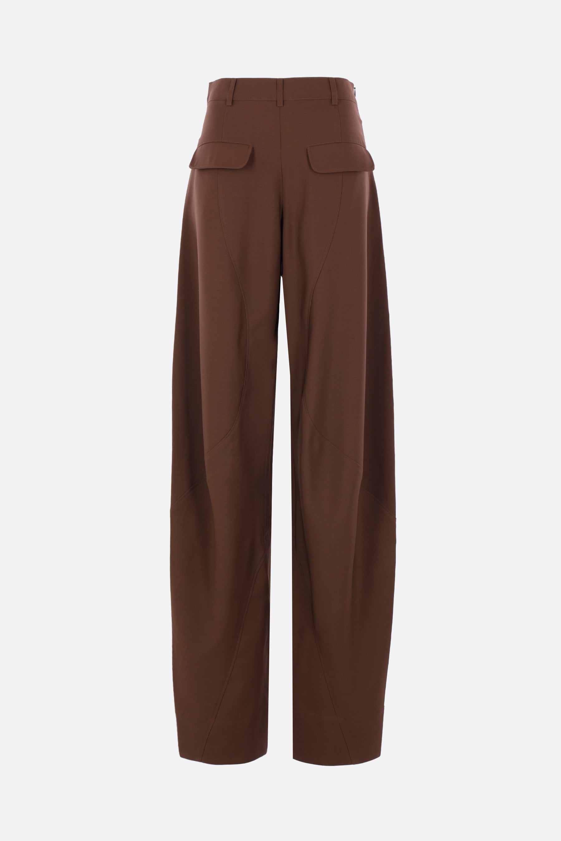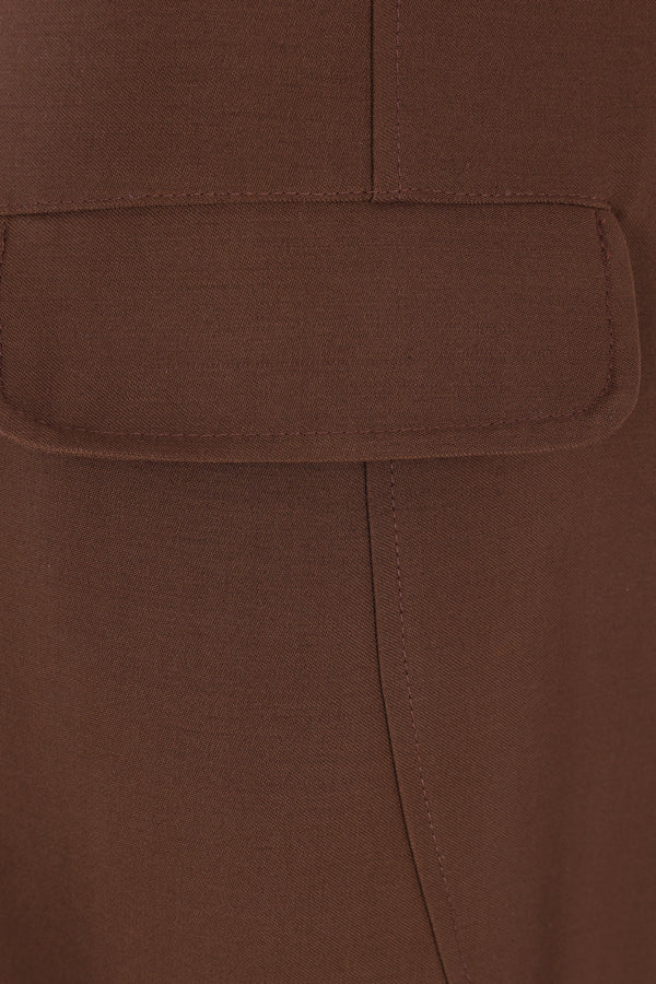 Zomer balloon trousers crafted from brown wool. Featuring a side invisible zip closure, belt loops, front flap pockets, and curved seams.