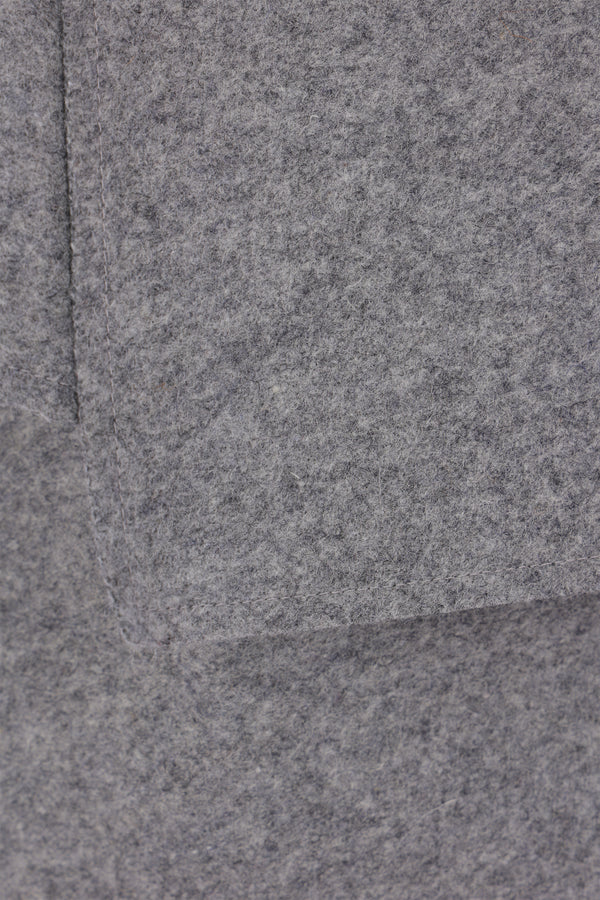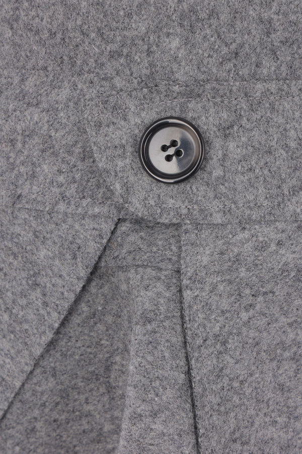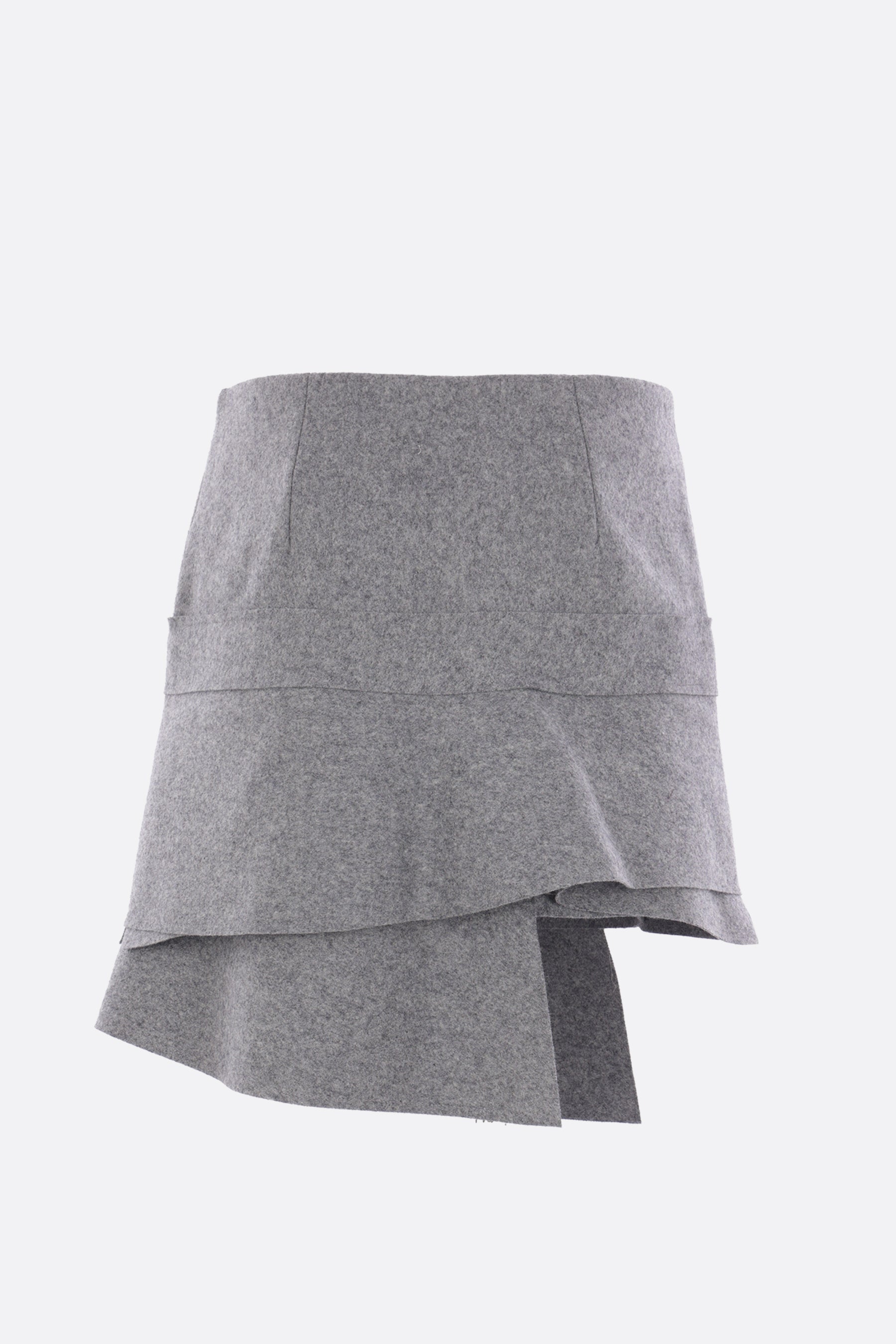 Zomer mini skirt crafted in grey wool felt. Featuring a side zip fastening, decorative front button, asymmetrical layered hem, and lined interior.