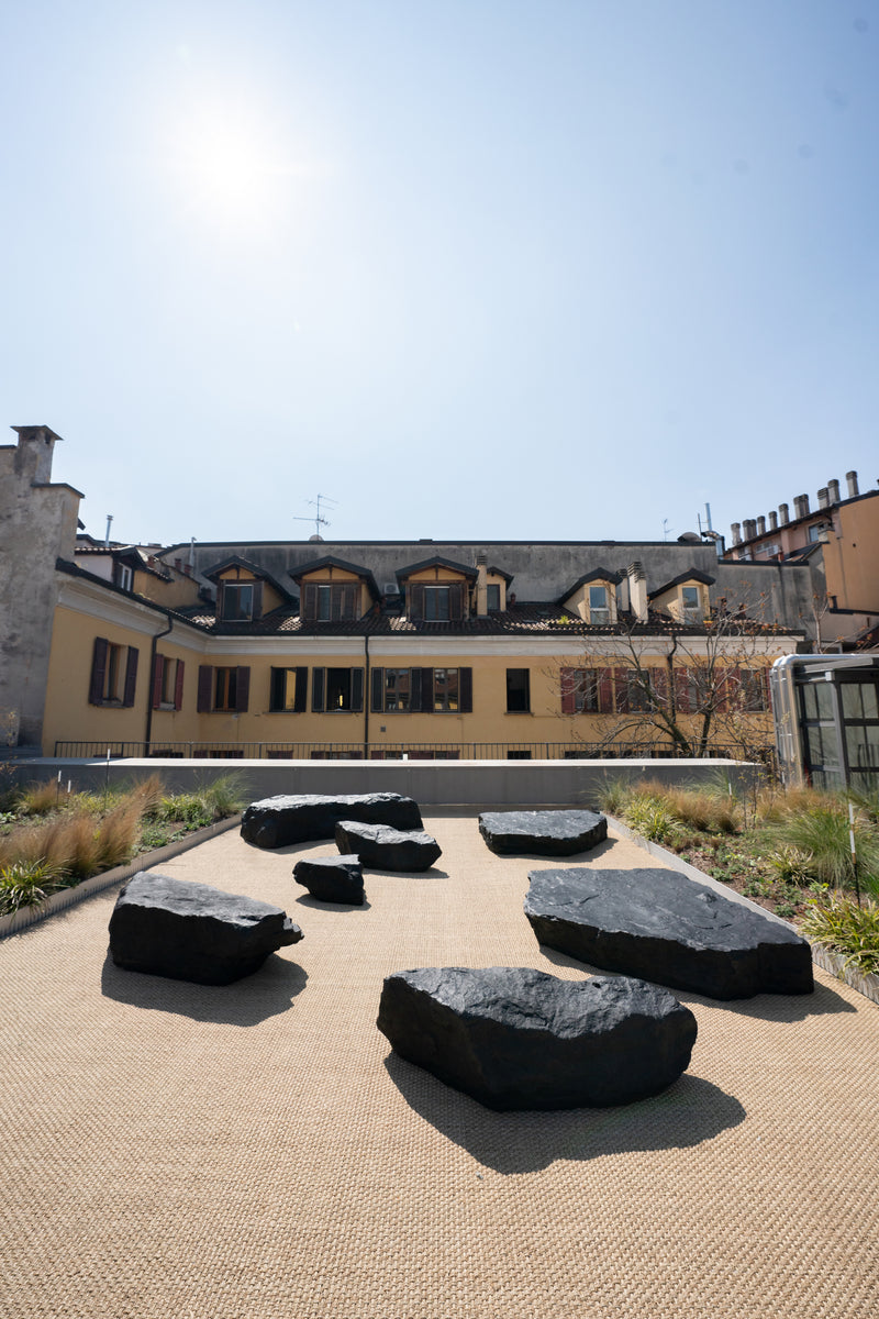 On the Rooftop of 10 Corso Como, creations by Imperfettolab appear as if suspended, guiding us into imaginary worlds. Trip, a bench with name and shapes narrating a dreamlike journey, and various forms of Arenaria blending nature and sculpture, turn the space into a poetic and timeless landscape.