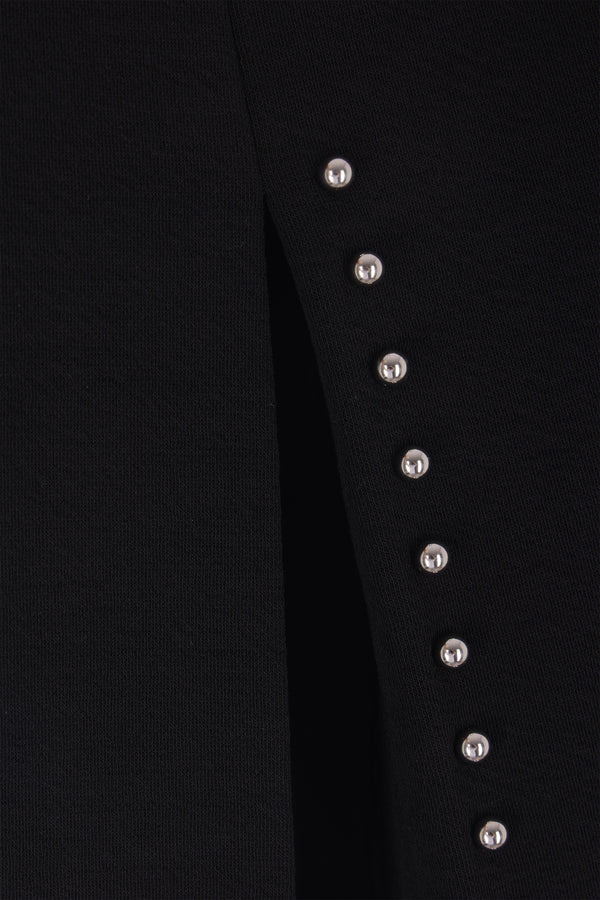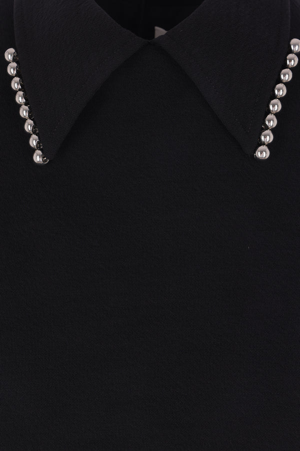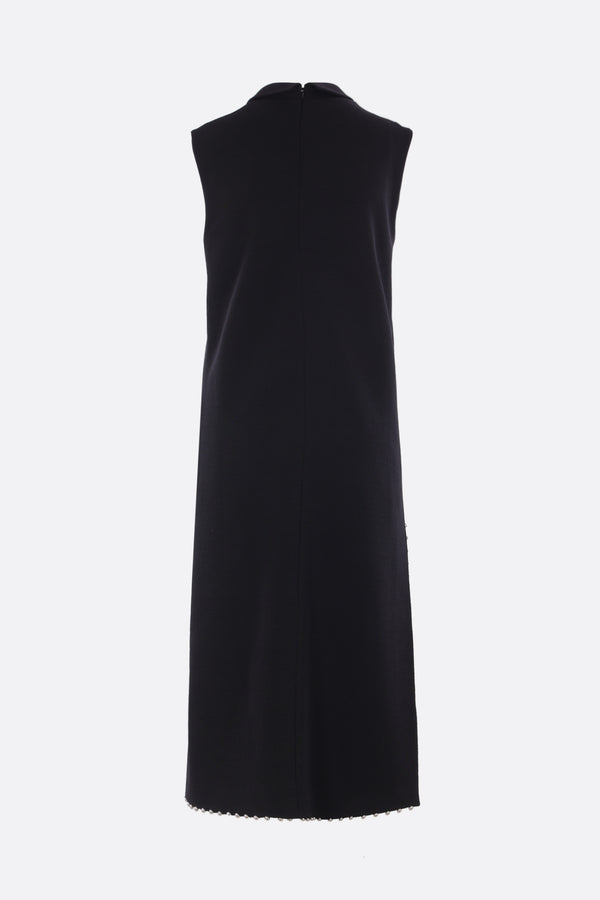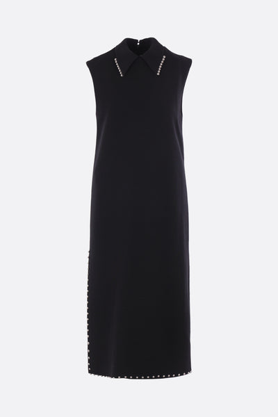 Sleeveless dress by Jil Sander made of black wool. Features a shirt-style collar decorated with studs, invisible zip closure at the center back, and straight hem with side slit. Fully lined.